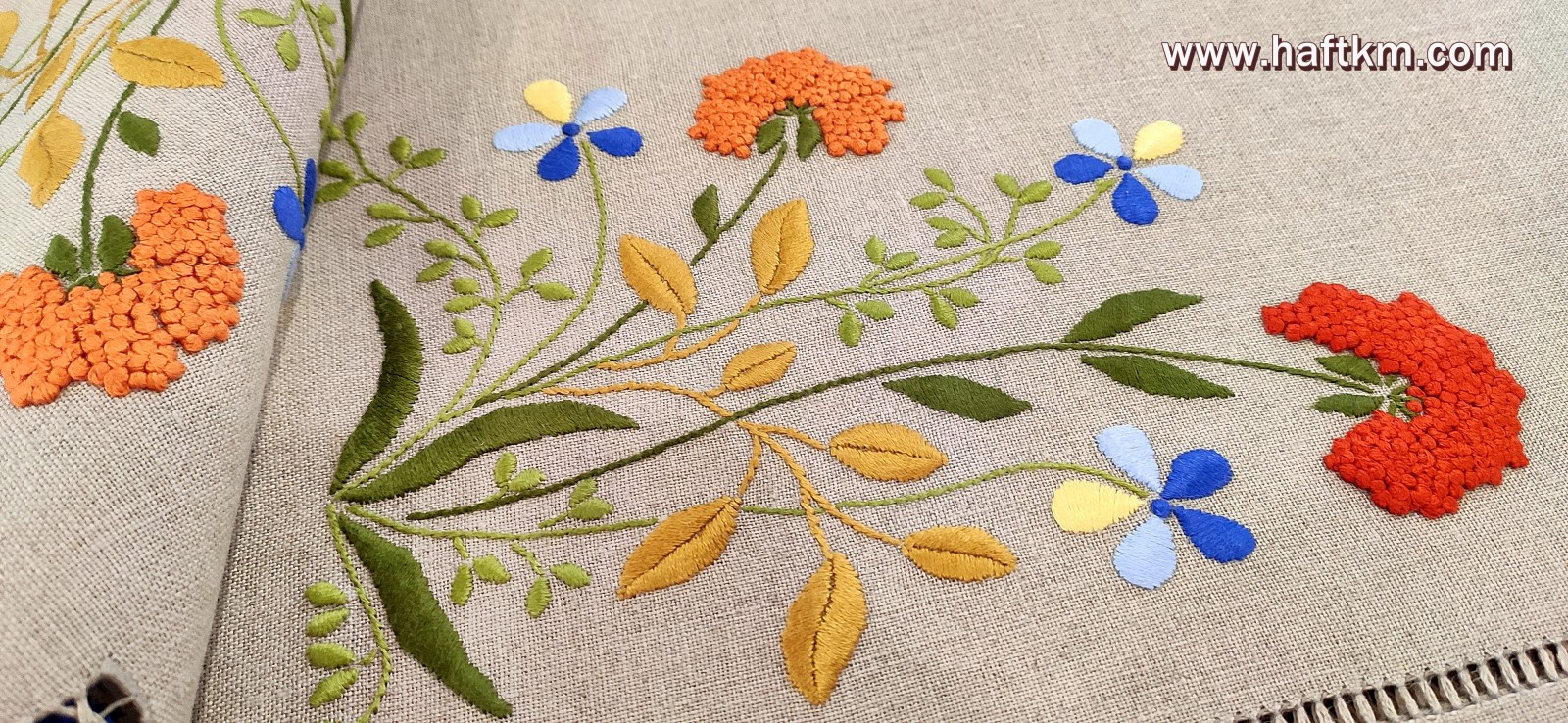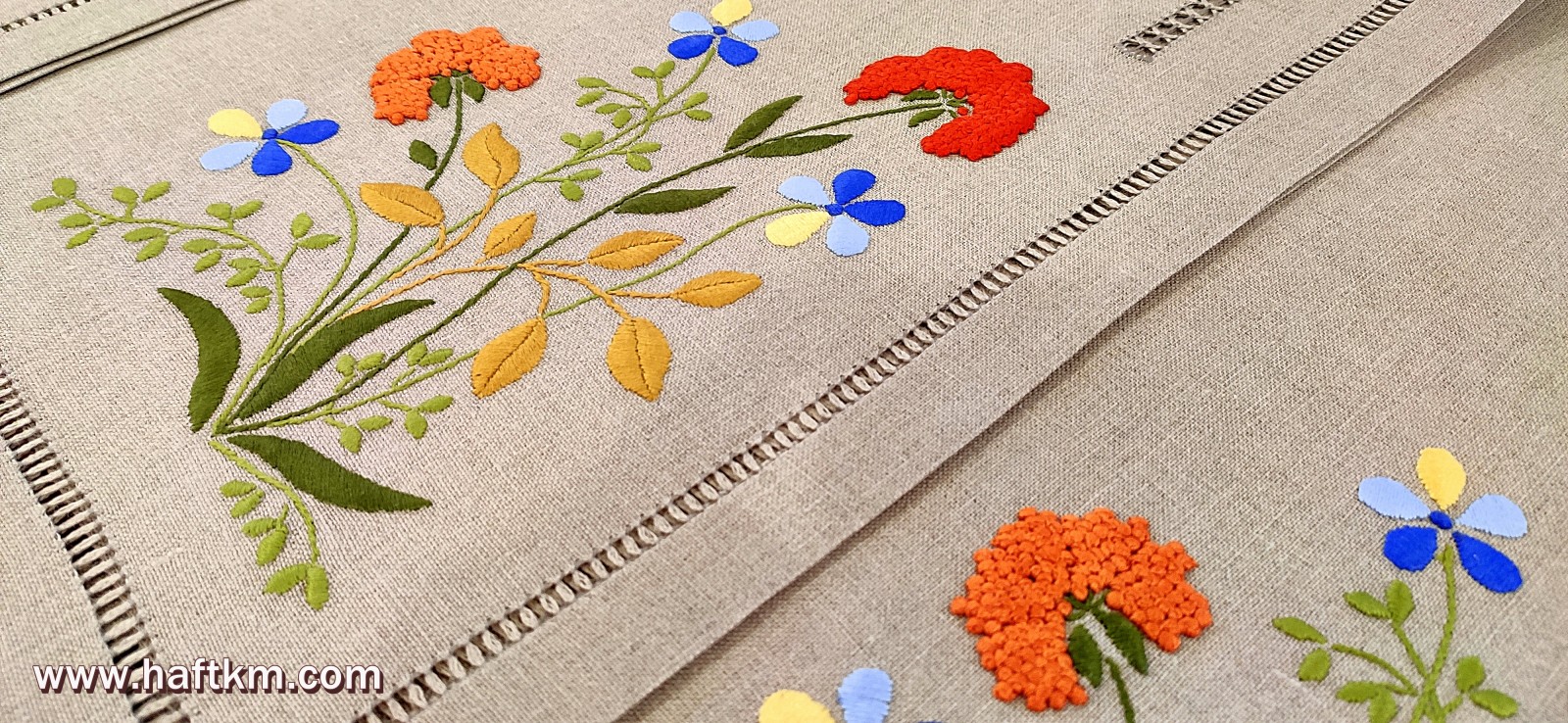 Materiał: naturalny len 100 %, nici bawełniane 100% mulina.