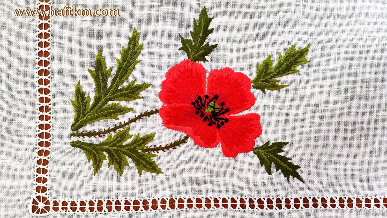 Technika wykonania: haft cieniowany, koronka szydełkowa.