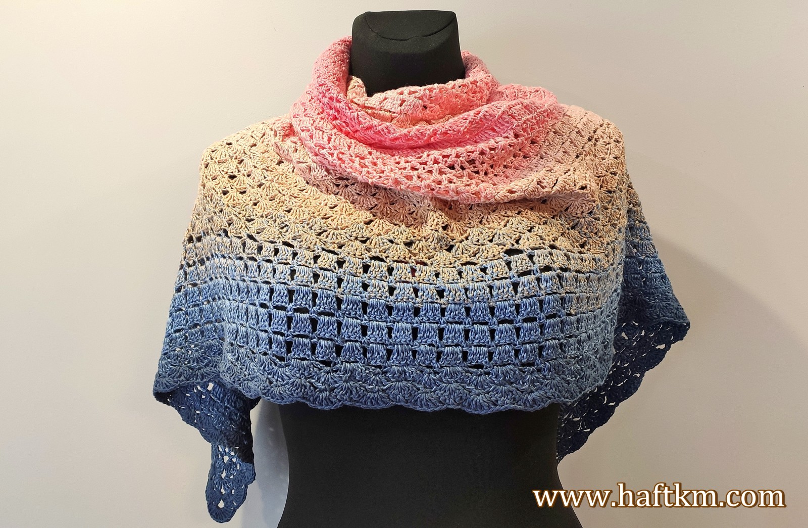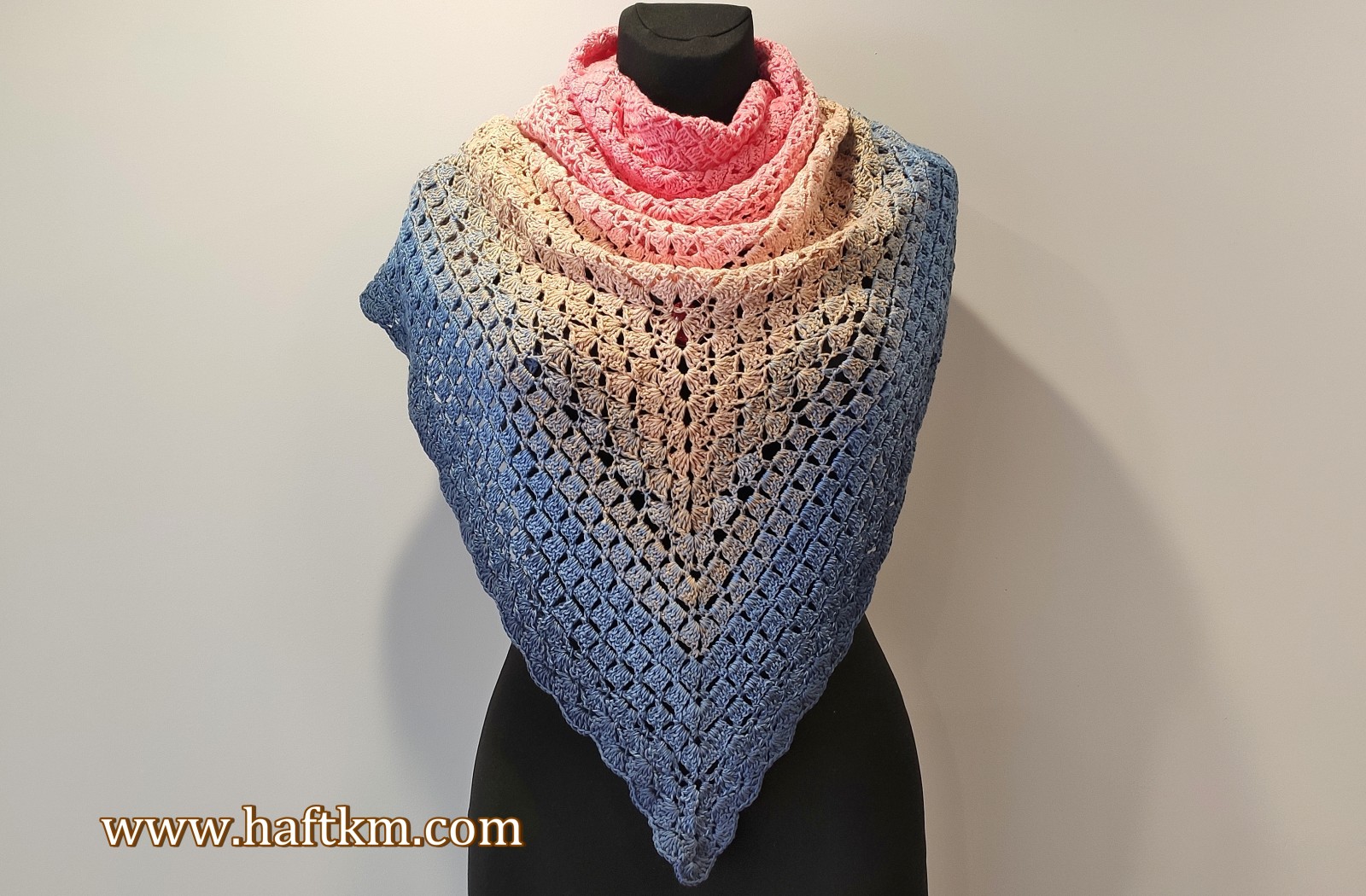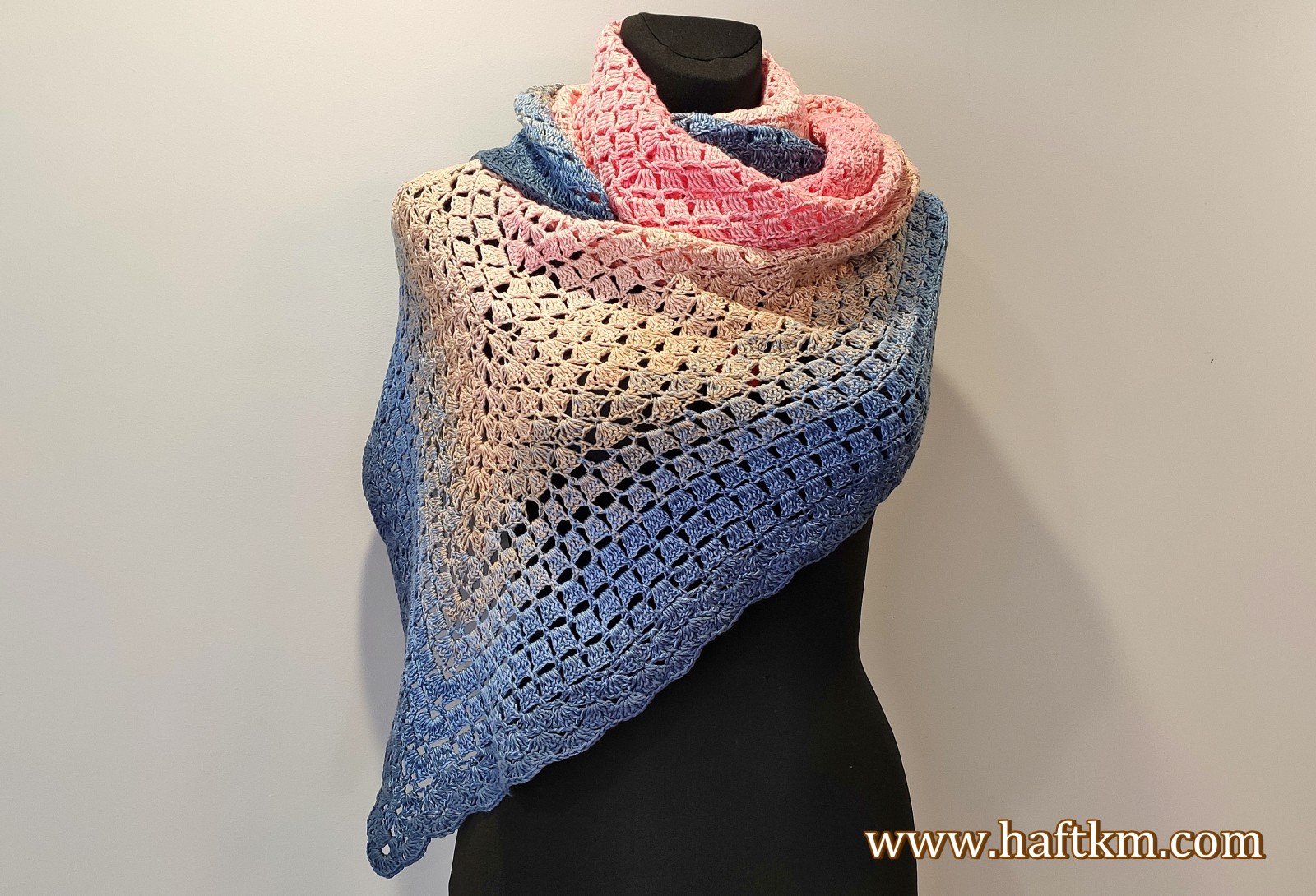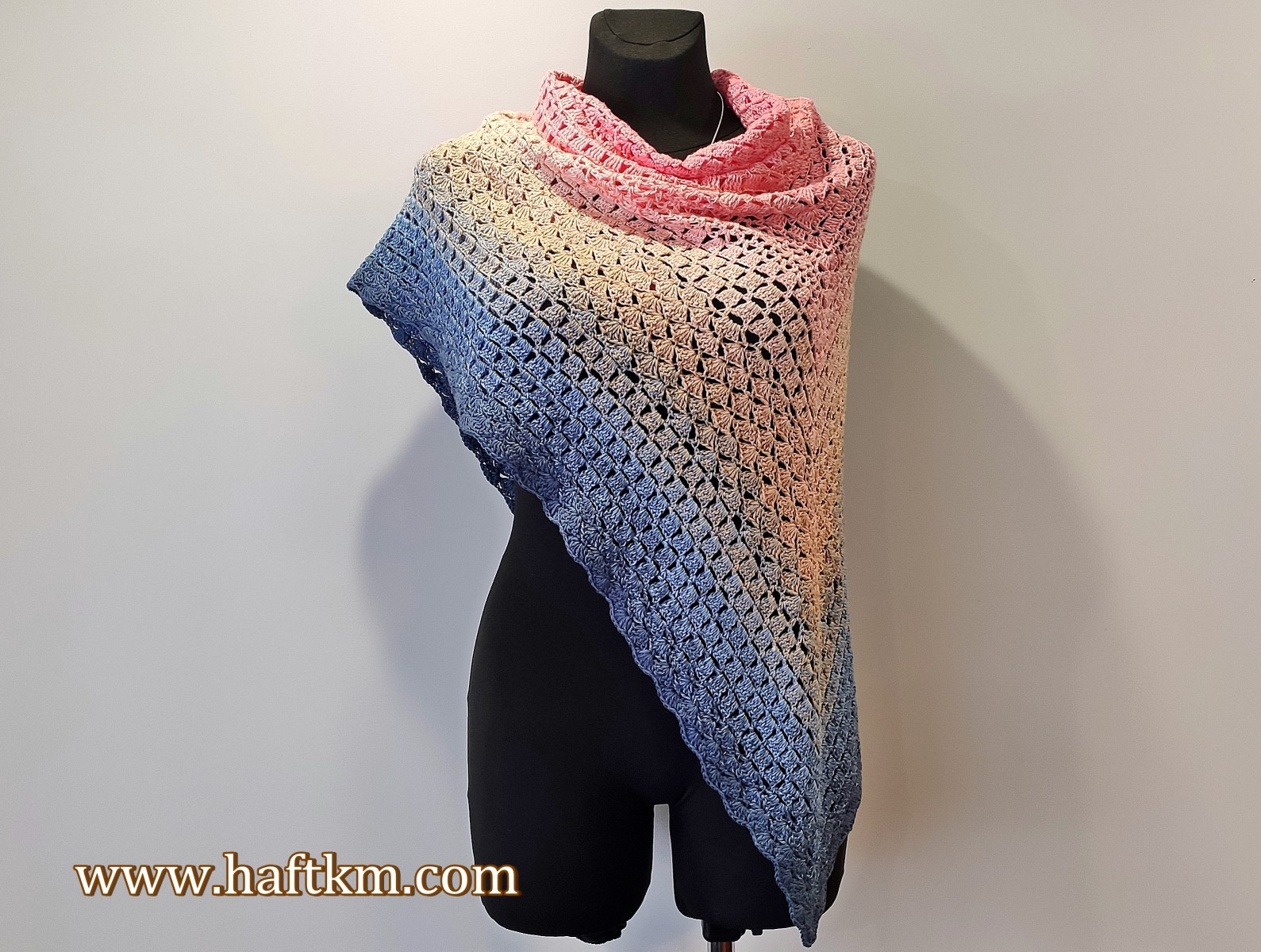 Wyjątkowa, ręcznie wykonana chusta na szydełku ombre.
