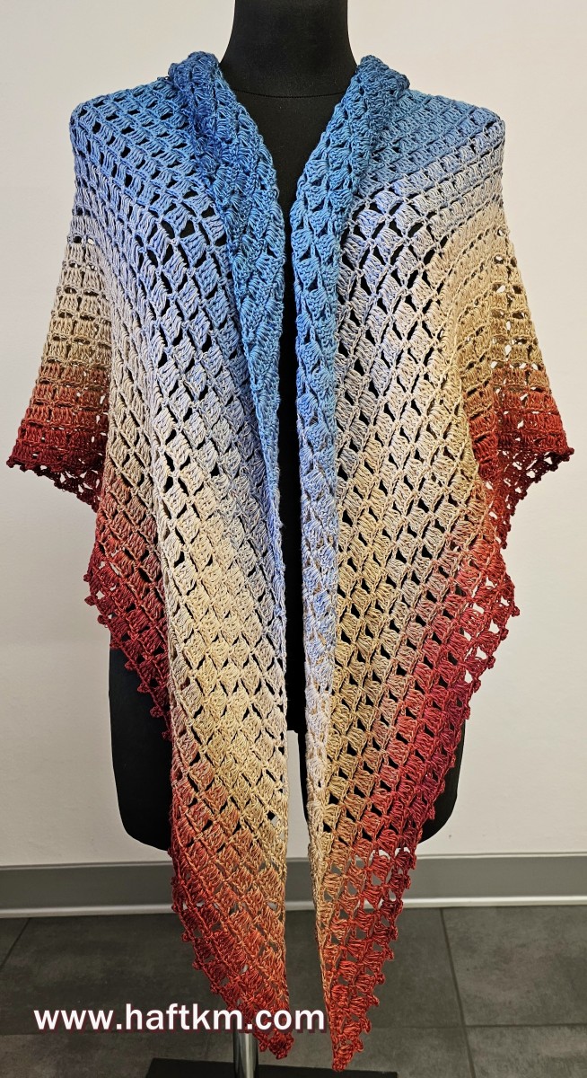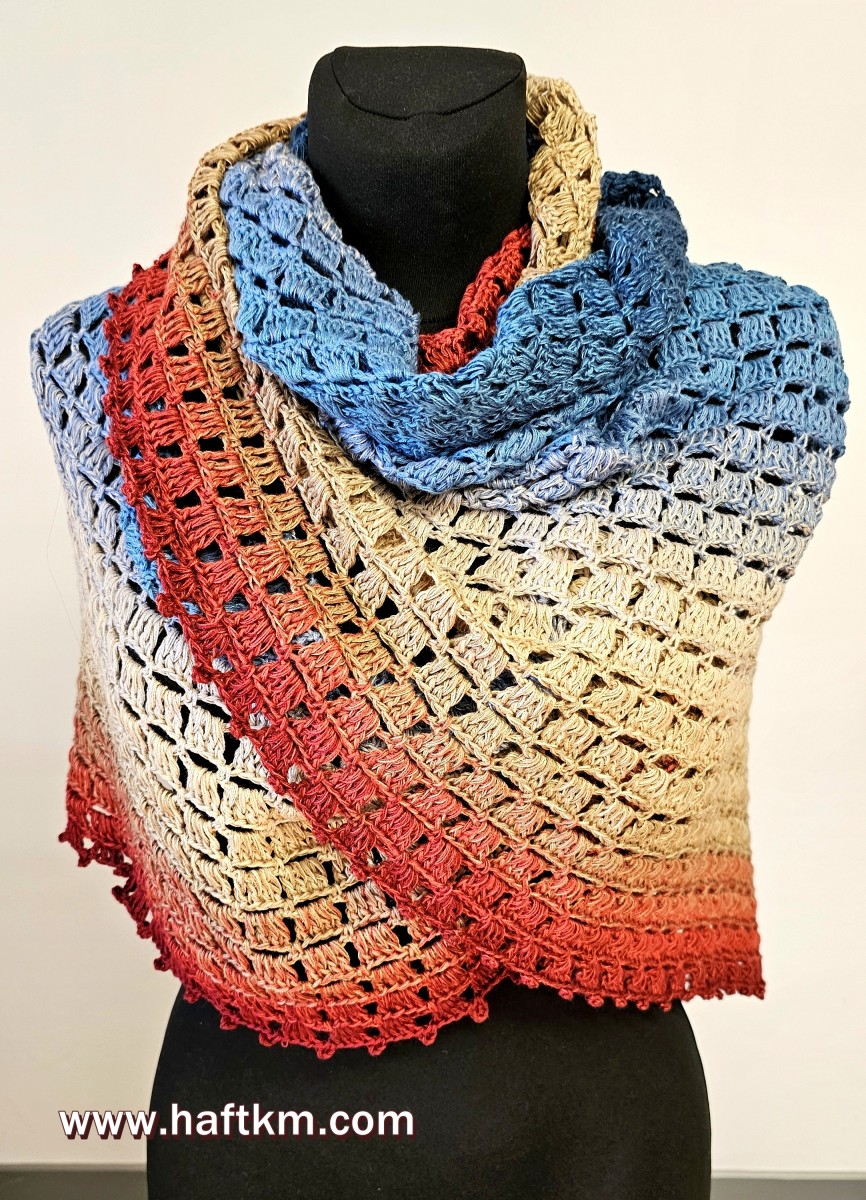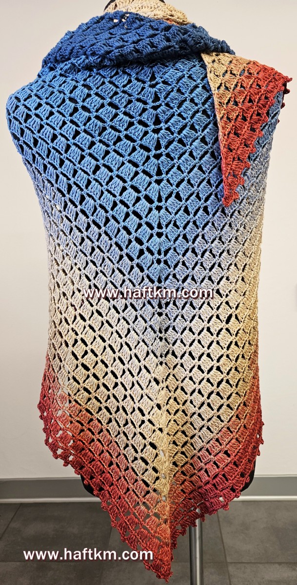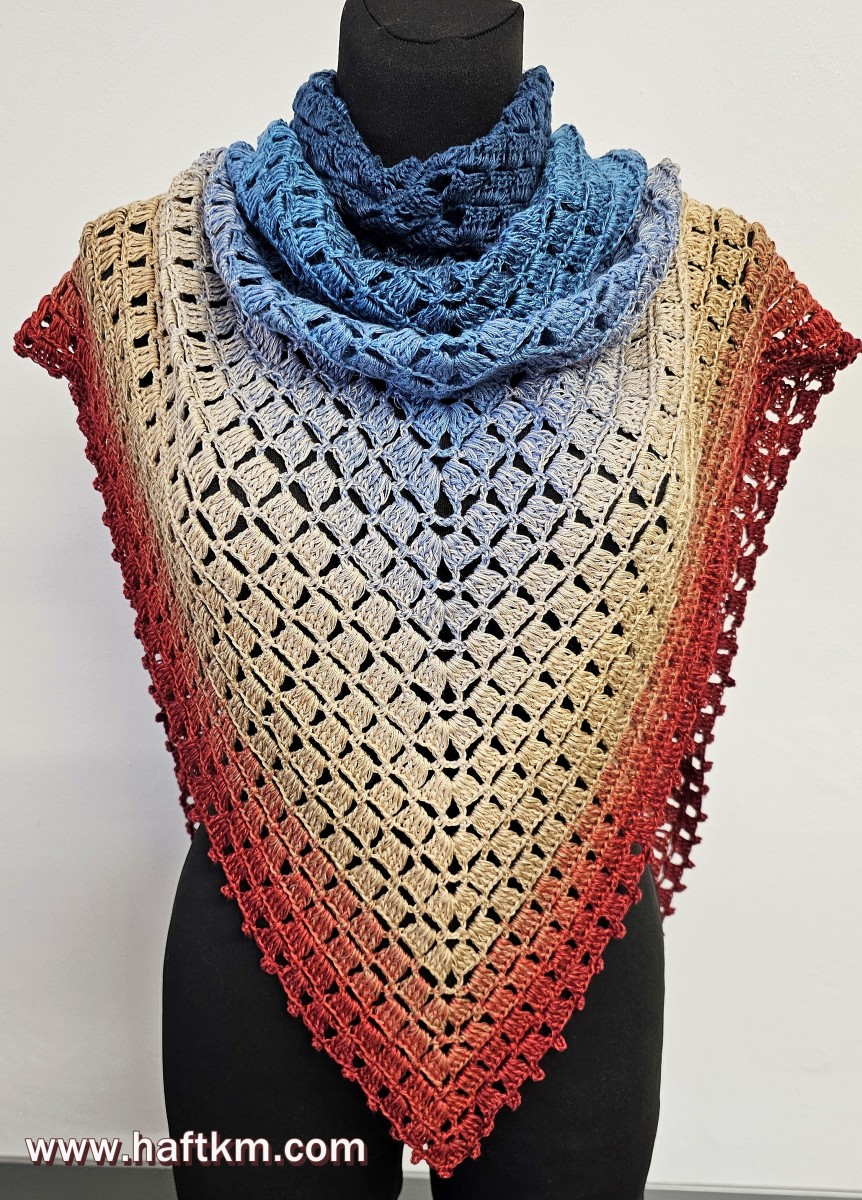 Wyjątkowa, ręcznie wykonana chusta na szydełku ombre.