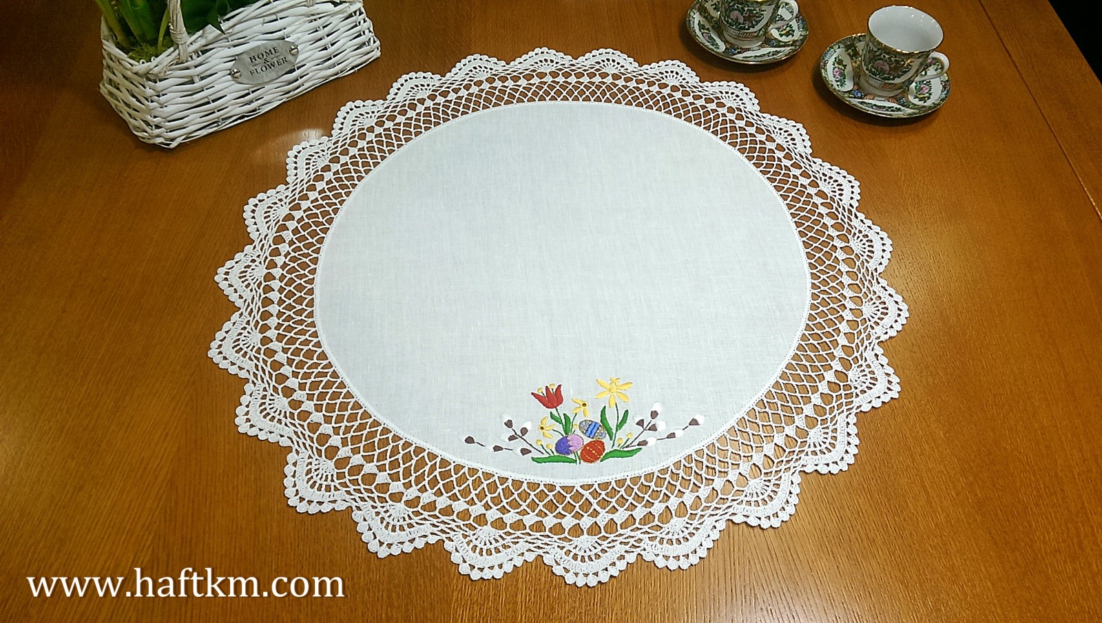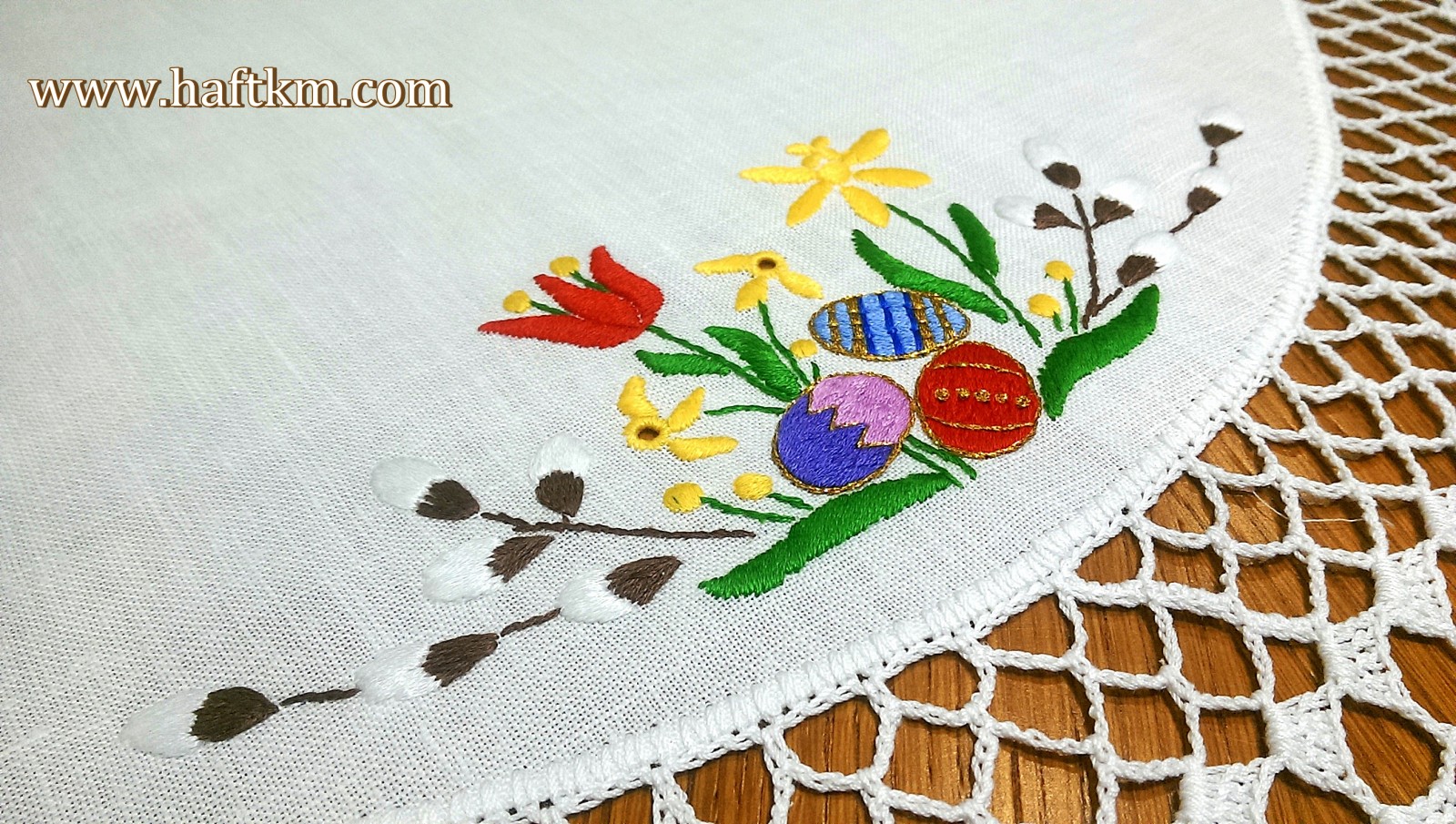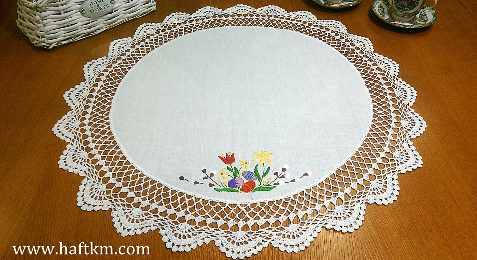 Śliczna serweta lniana z motywem wielkanocnym,