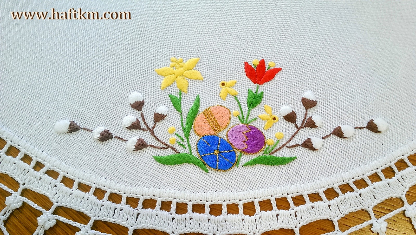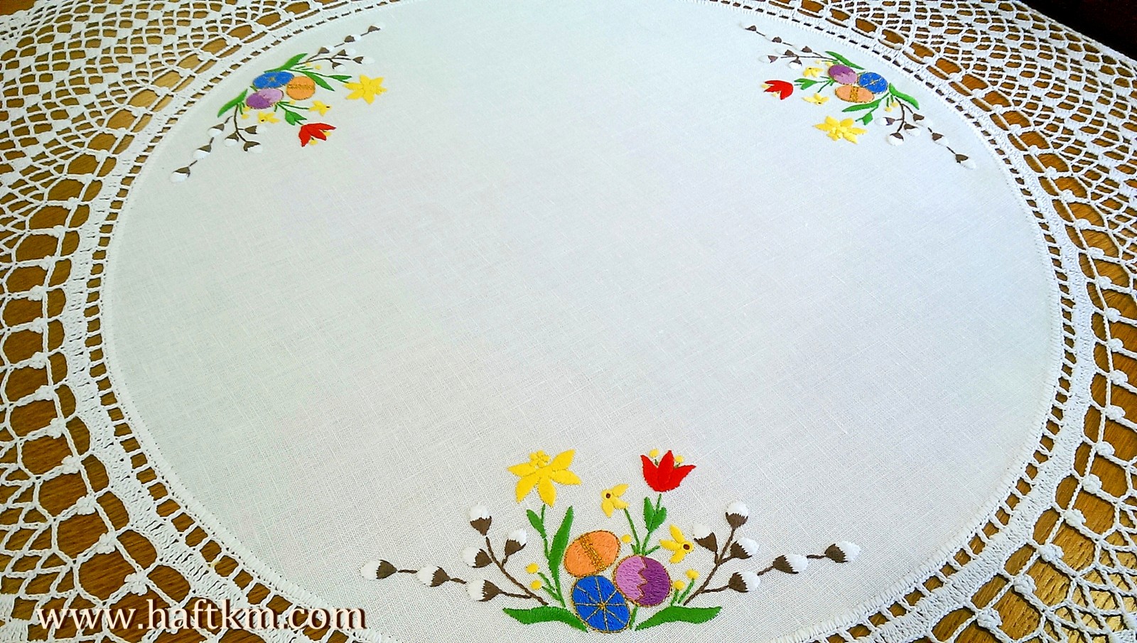 Śliczna serweta lniana z motywem wielkanocnym,