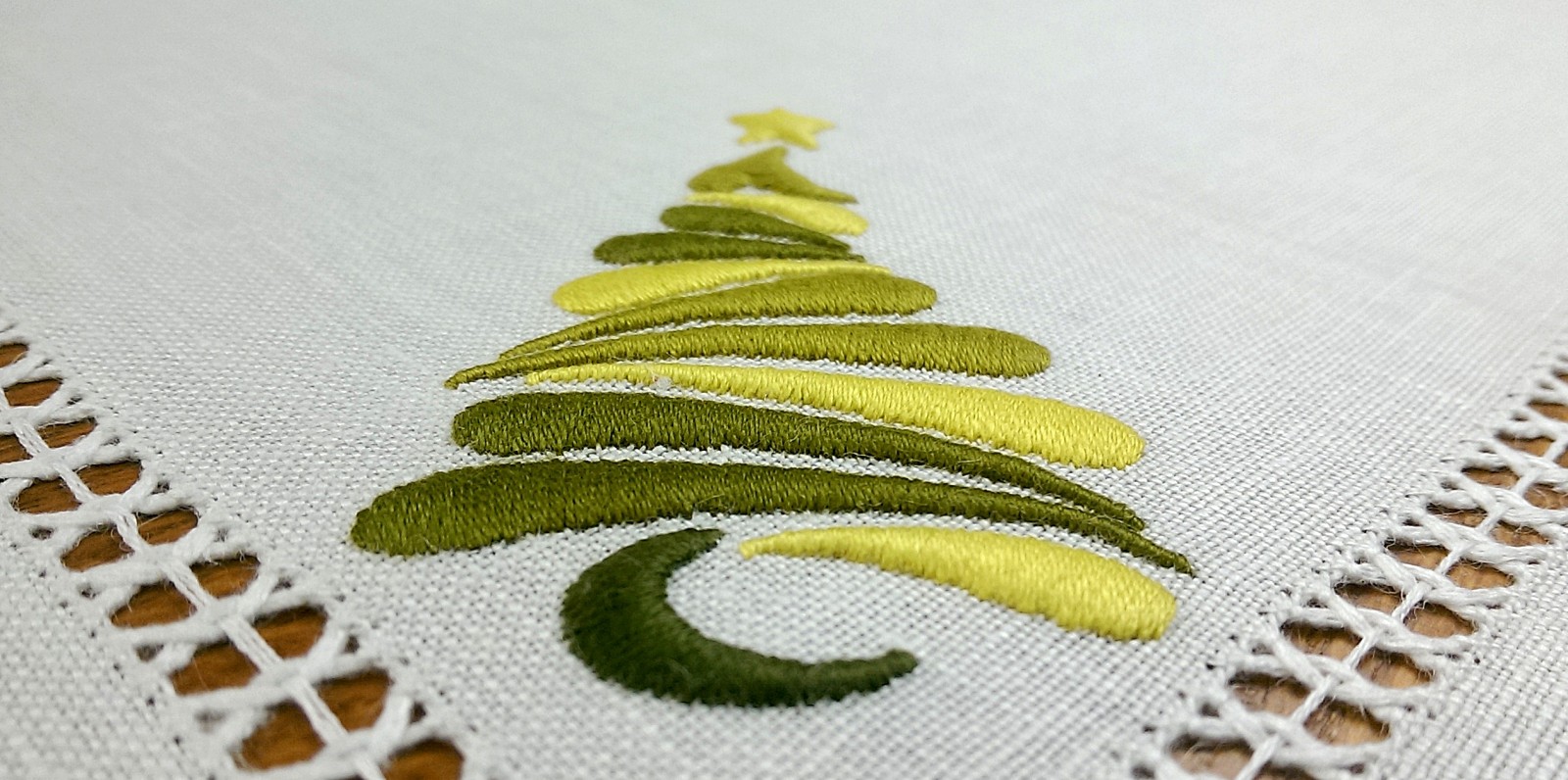 techniką haft wypukły. Ponadto serweta została misternie ozdobiona elegancką i estetyczną mereżką.
