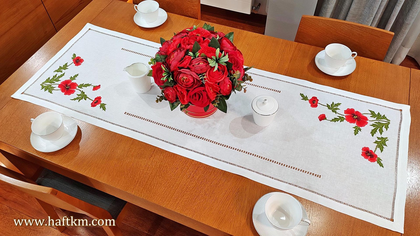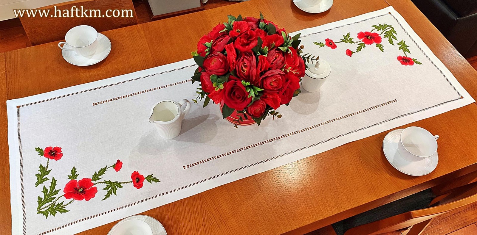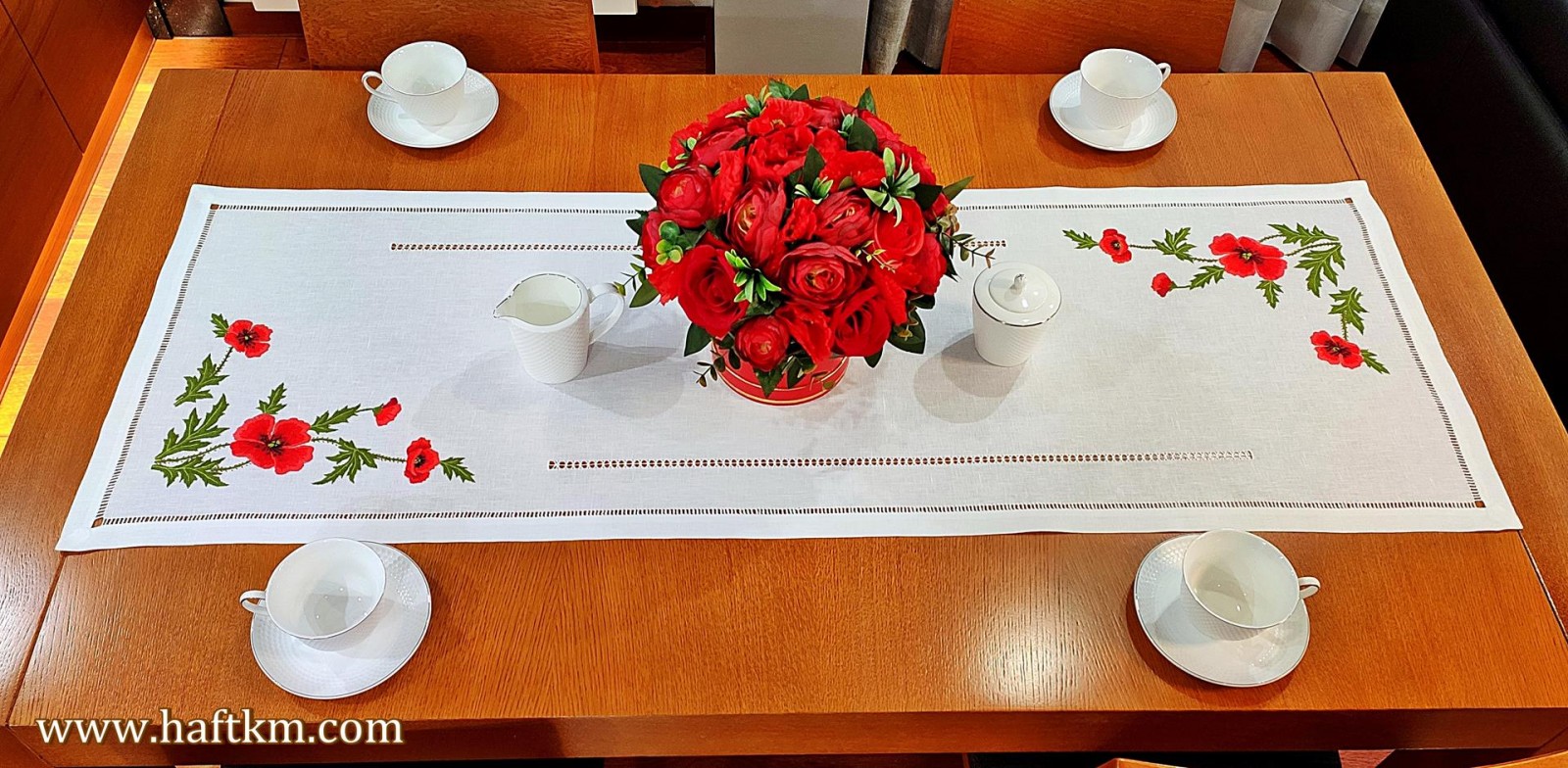 Ponadto bieżnik został misternie ozdobiony elegancką i estetyczną mereżką.