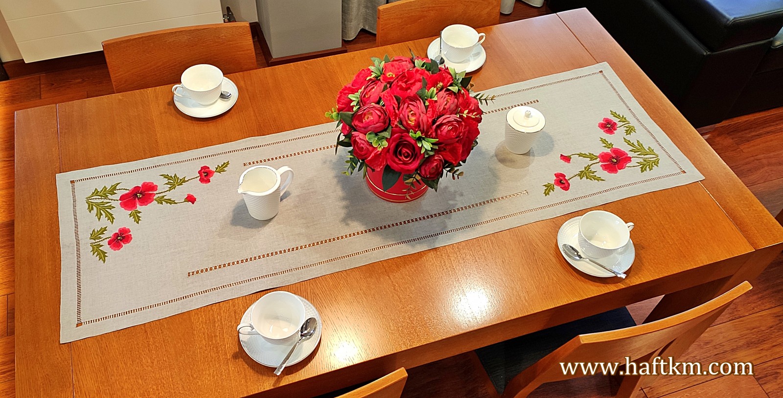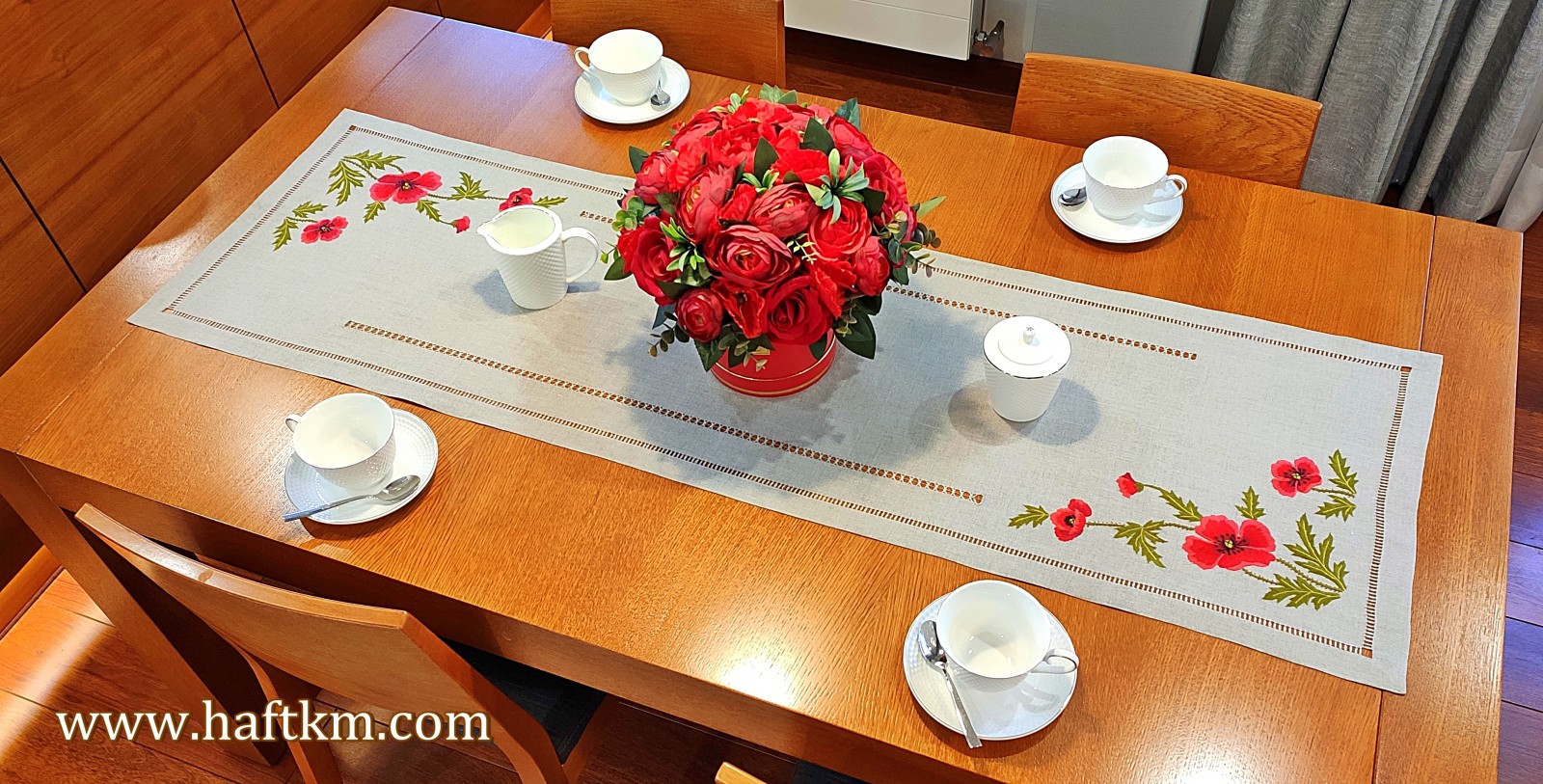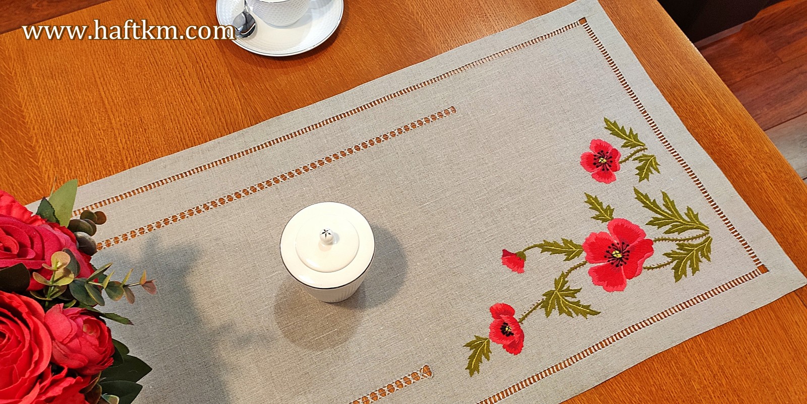 Ponadto bieżnik został misternie ozdobiony elegancką i estetyczną mereżką.
