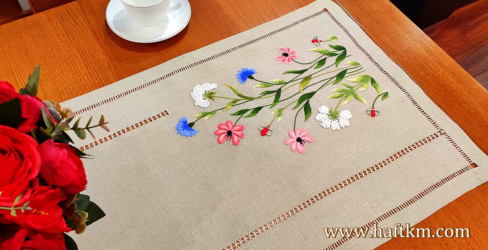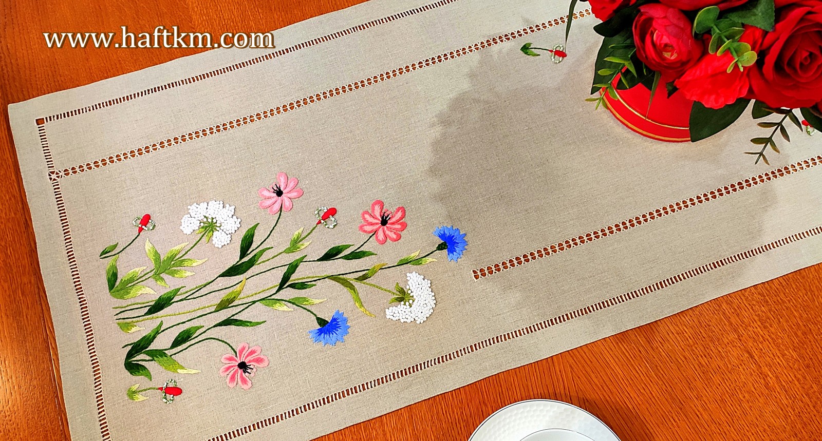 Ponadto bieżnik został misternie ozdobiony elegancką i estetyczną mereżką.