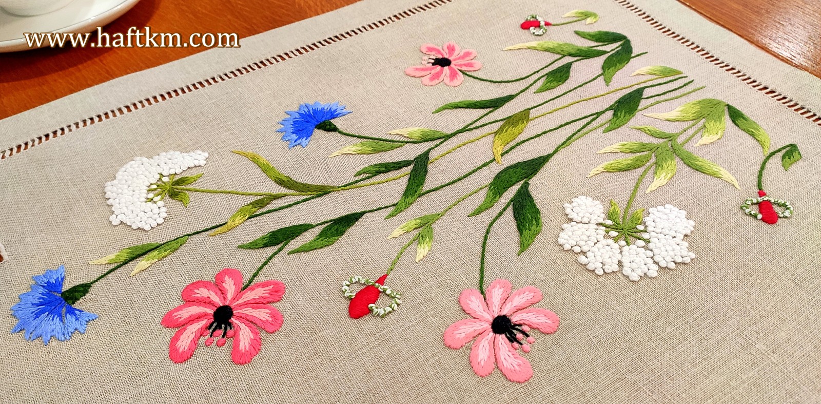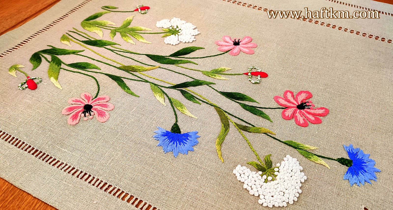 Materiał : naturalny len 100 %, nici bawełniane 100% mulina.