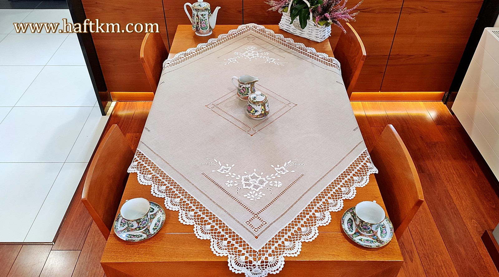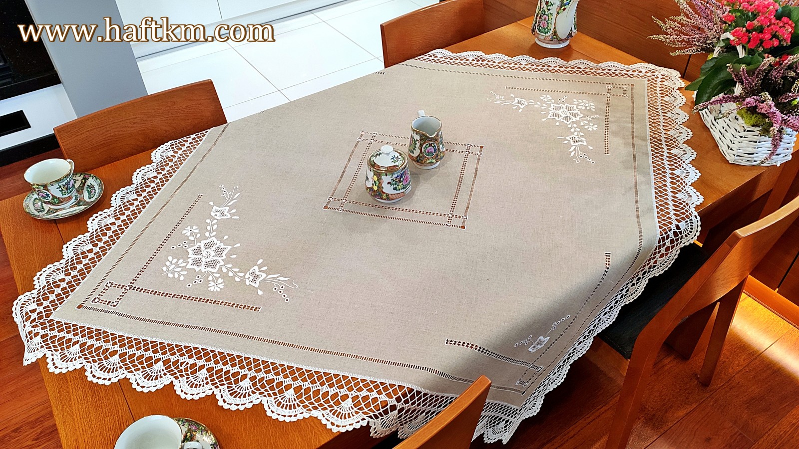 jak i nowoczesnych wnętrzach. Obrus wykonany bardzo pracochłonną i wymagającą ogromnej precyzji