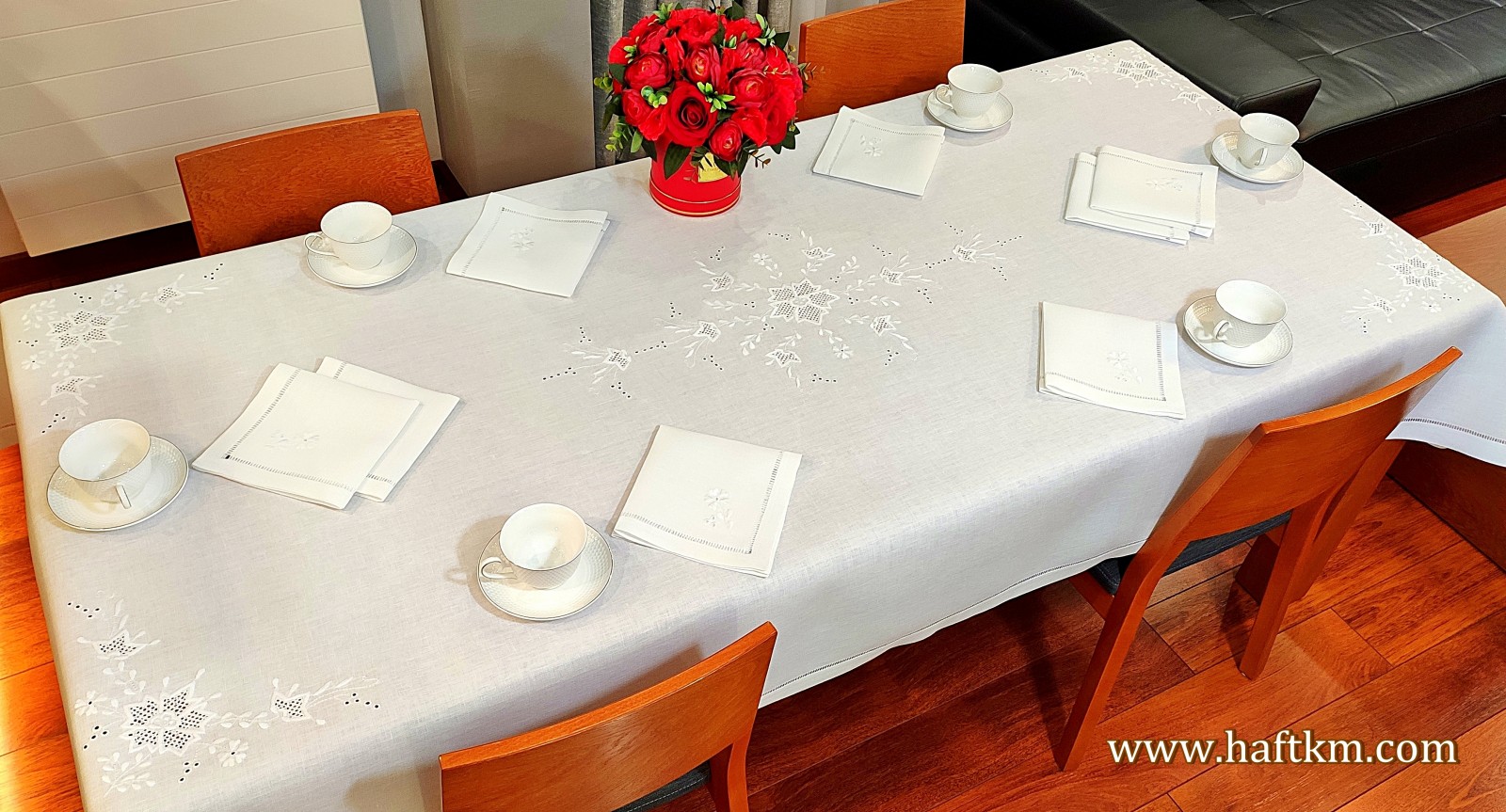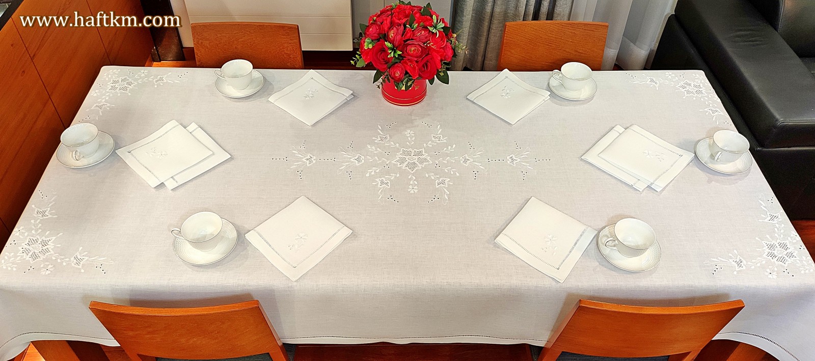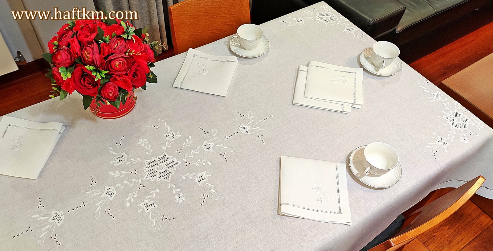 Komplet składa sie z obrusa i ośmiu serwetek.
