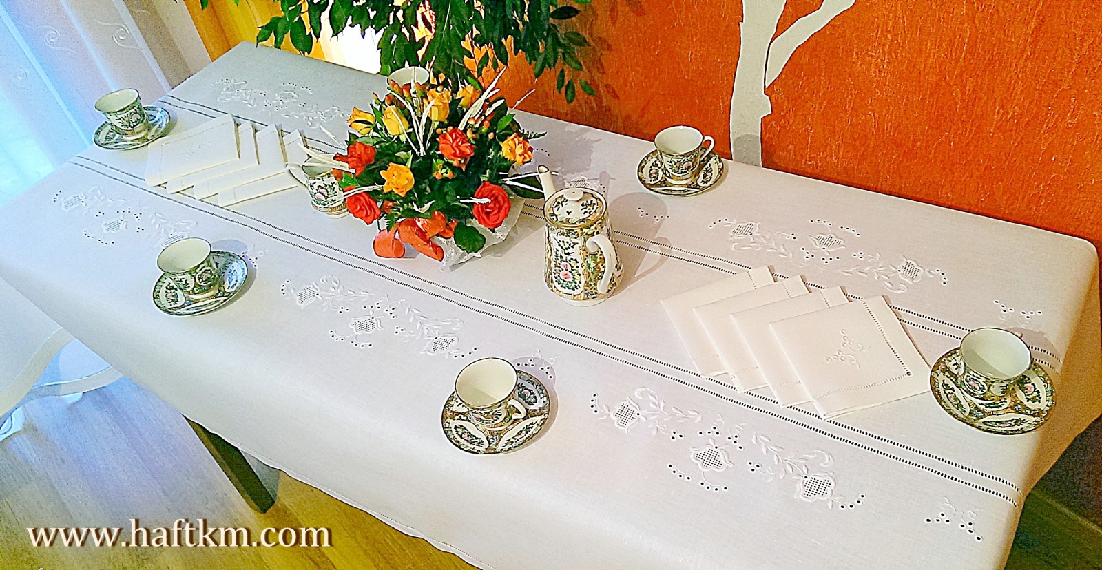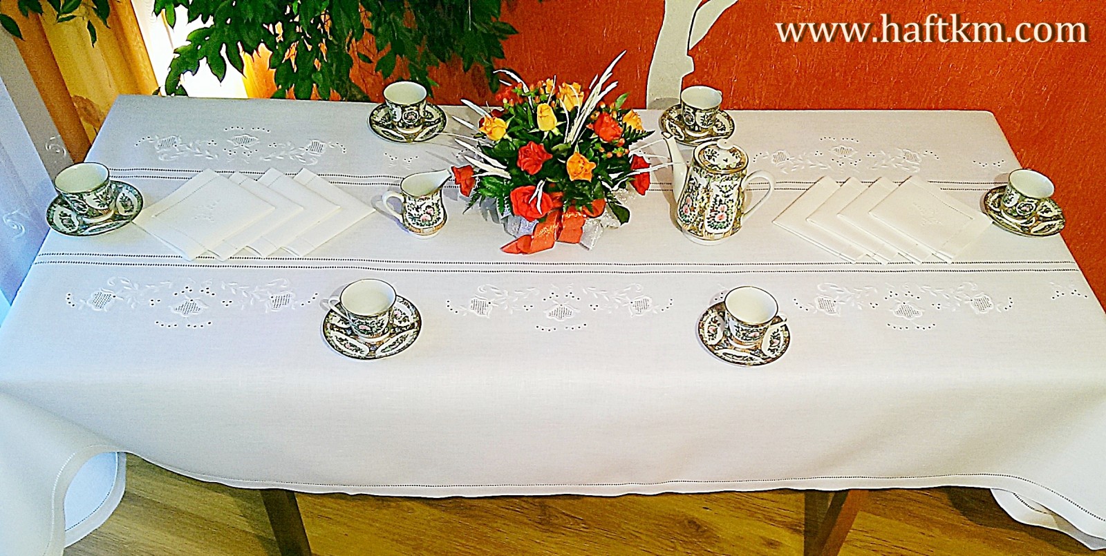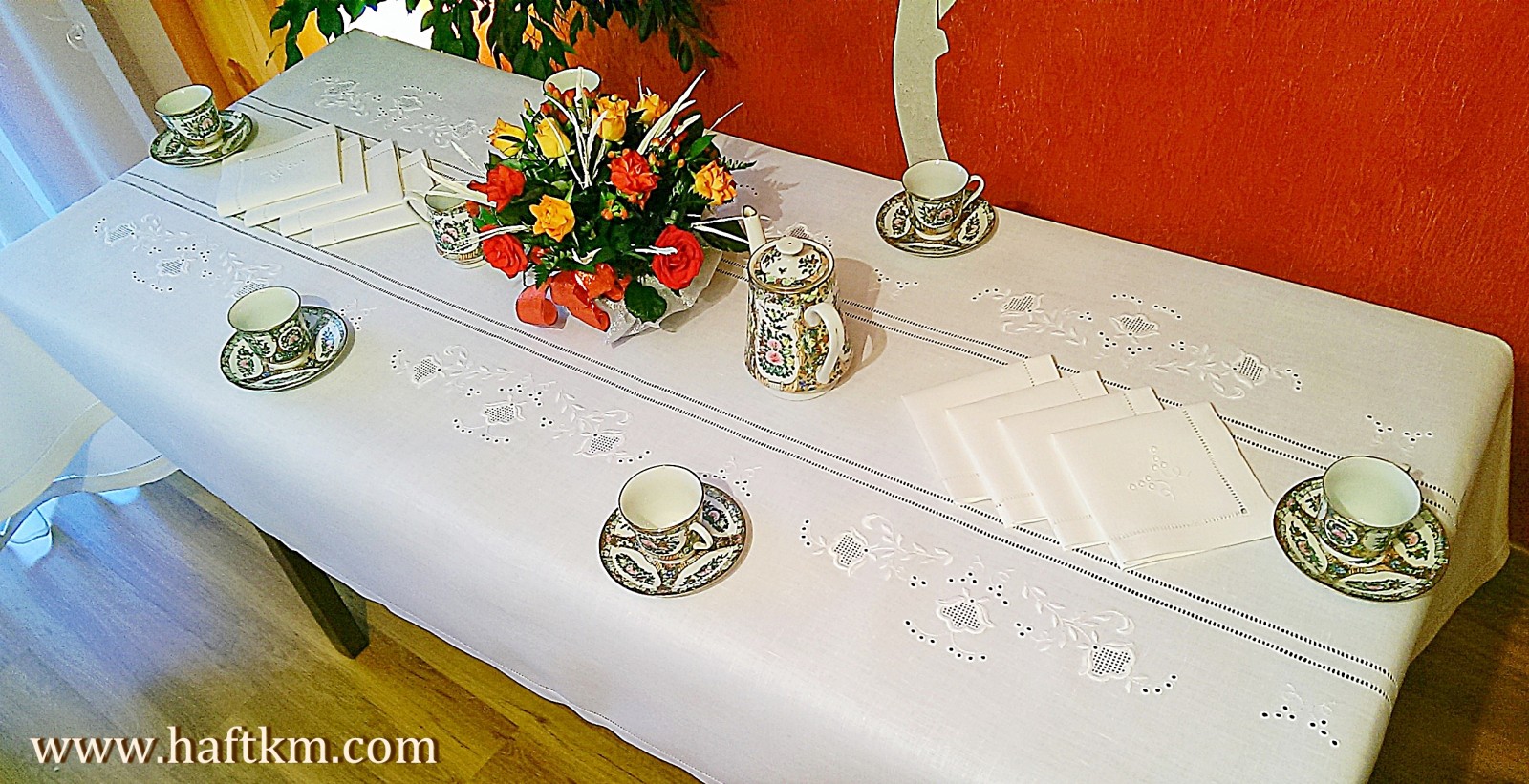 Komplet składa sie z obrusa i ośmiu serwetek.