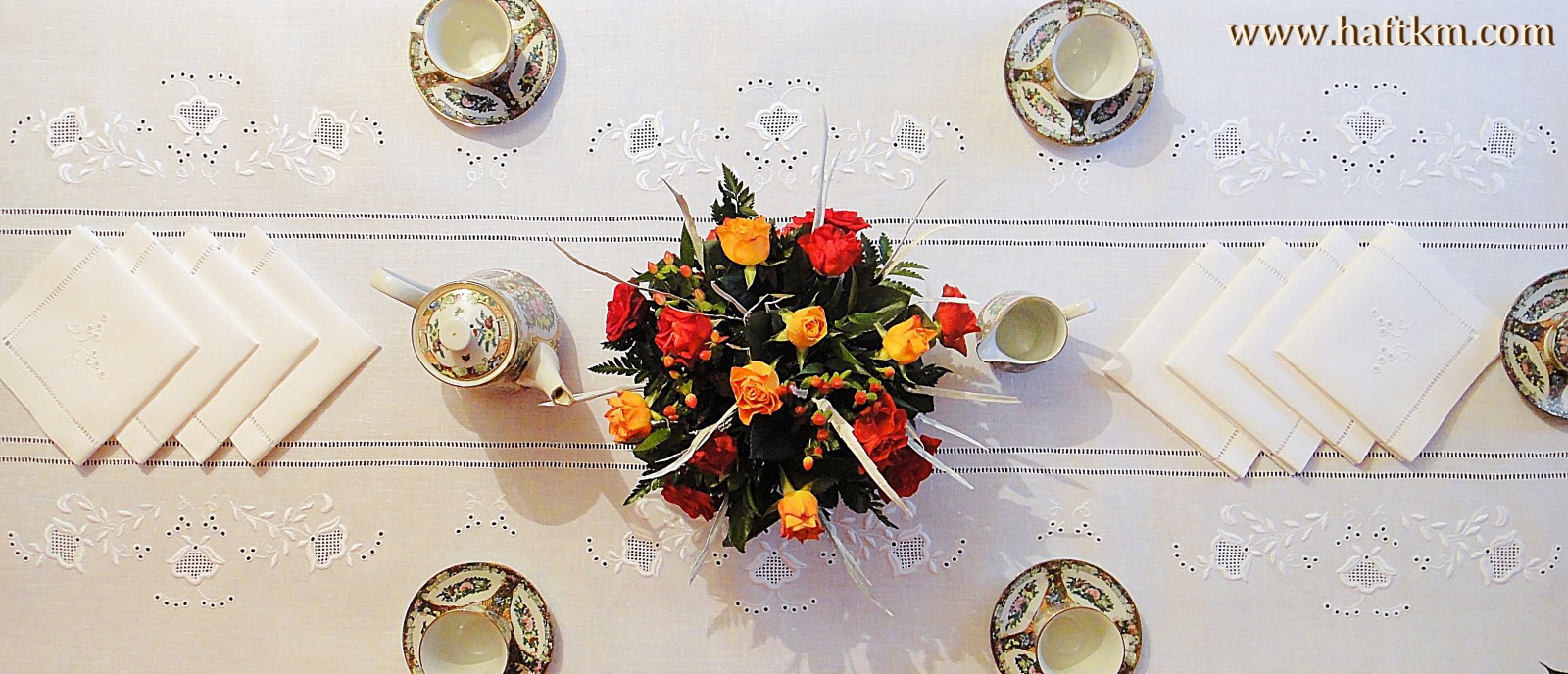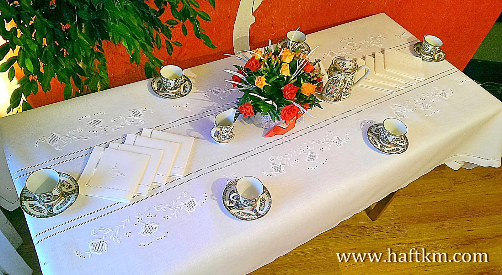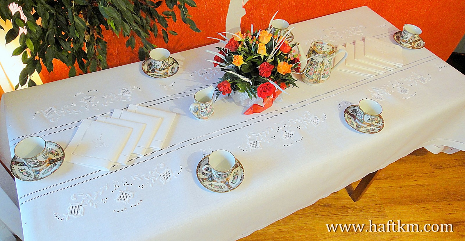 Komplet składa sie z obrusa i ośmiu serwetek.