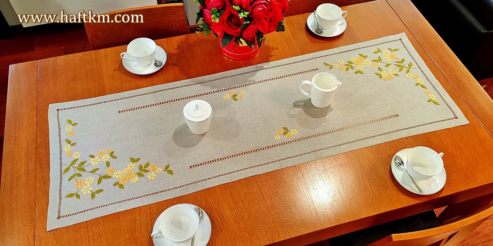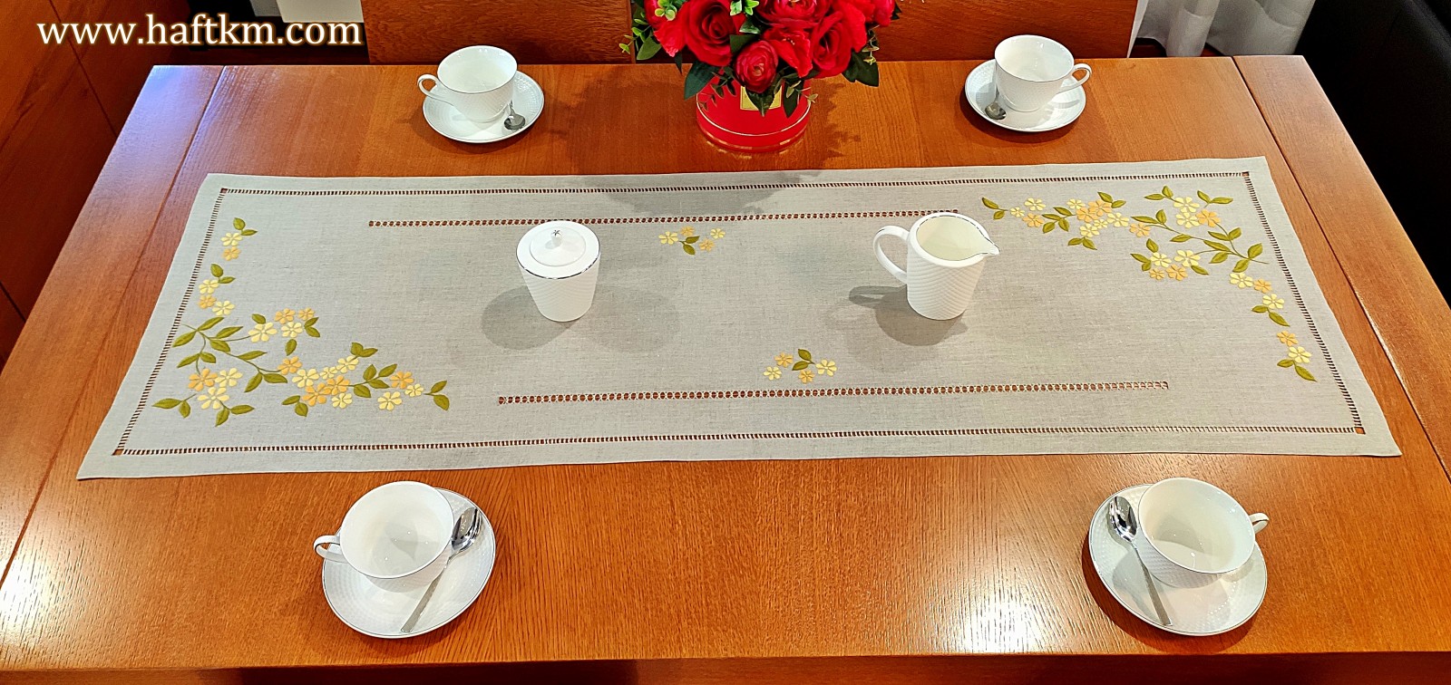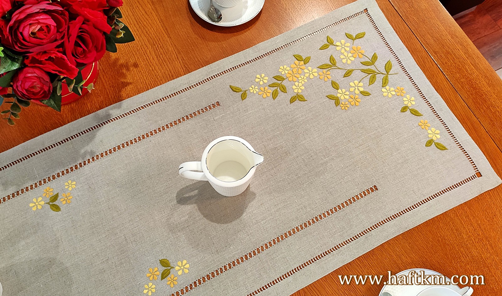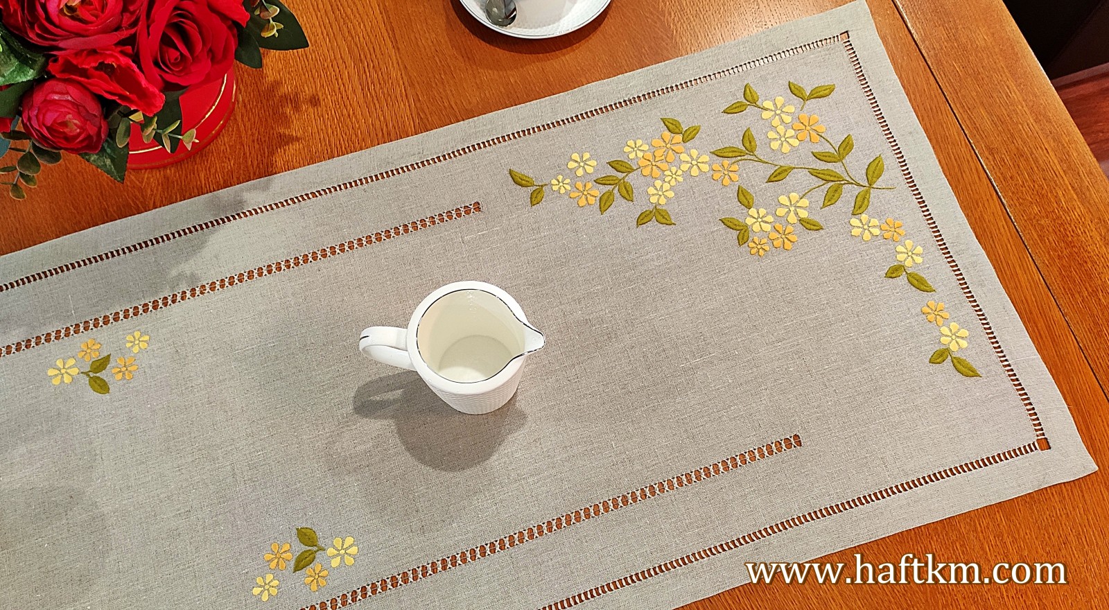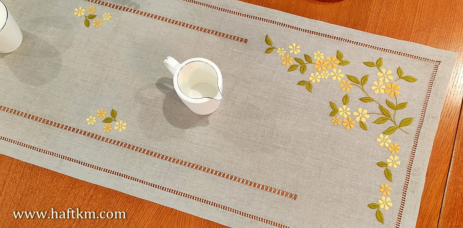 Ponadto bieżnik został misternie ozdobiony elegancką i estetyczną mereżką.