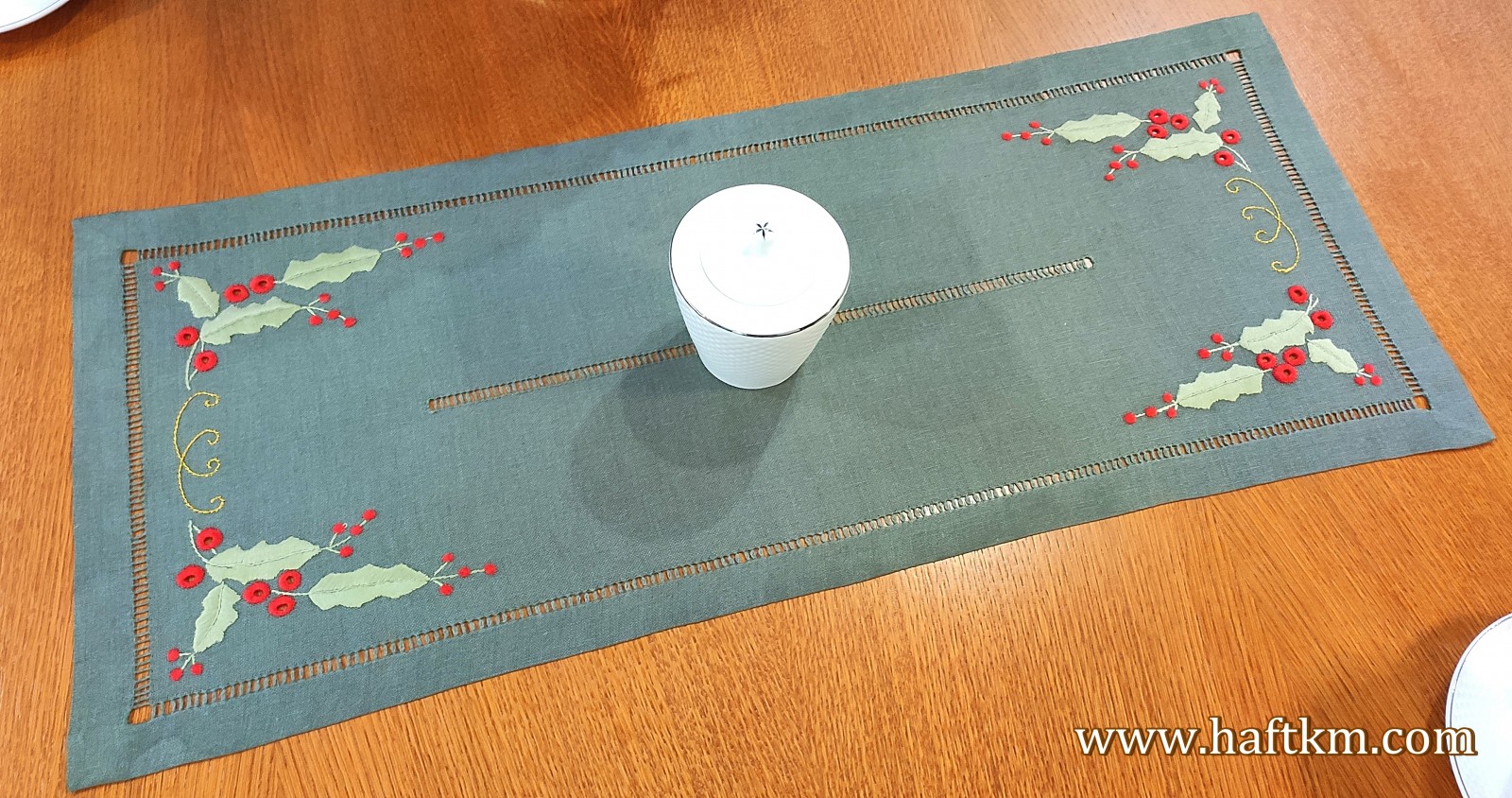 Elegancki bieżnik świąteczny " Ostrokrzew "