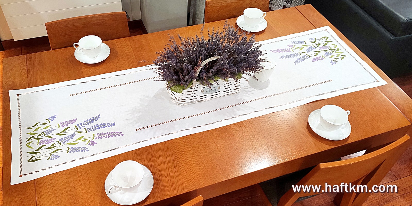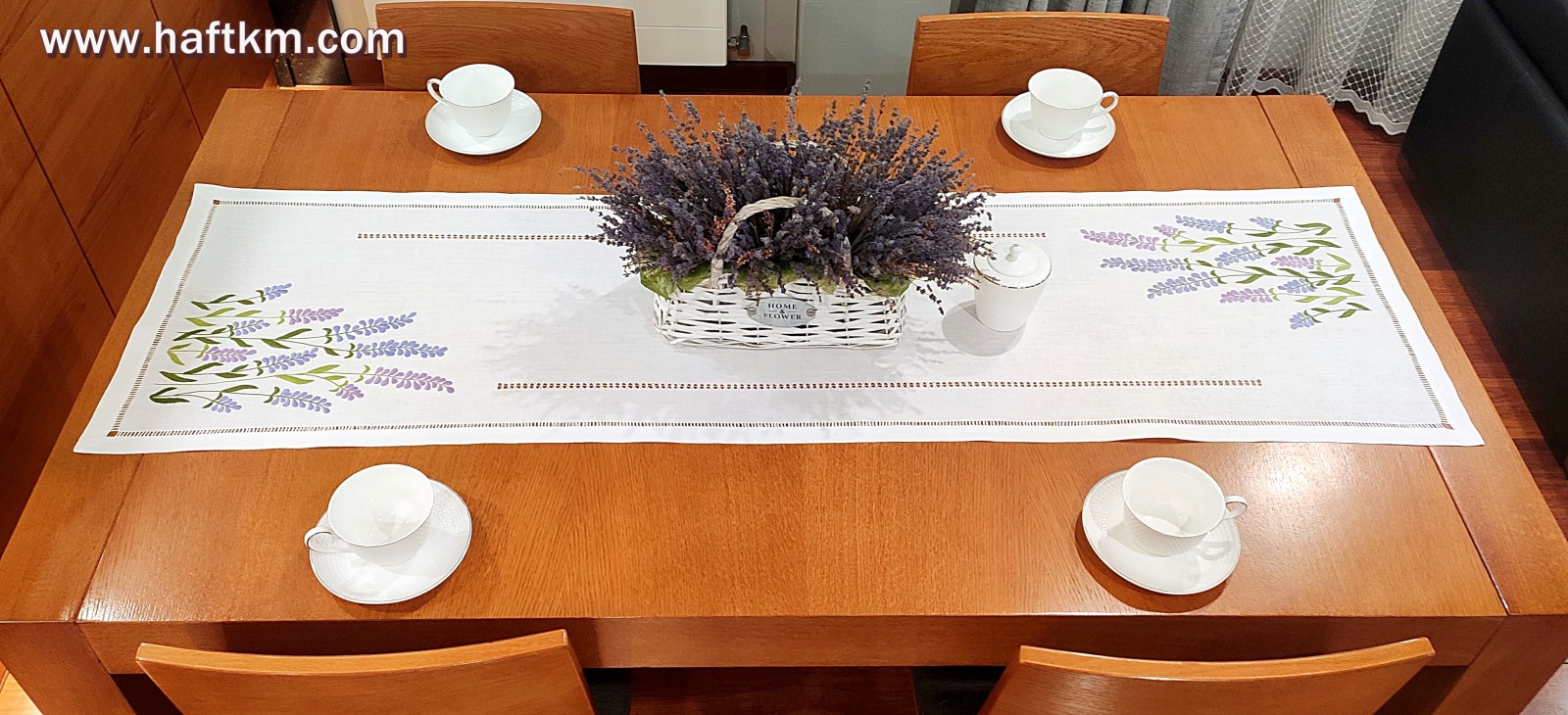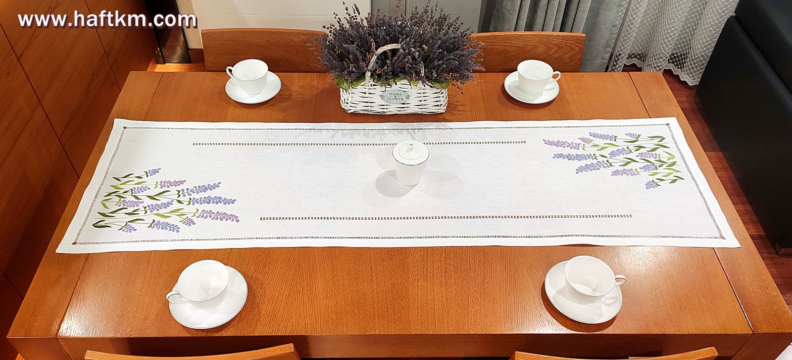 Lniany bieżnik ręcznie haftowany " Lawenda"
