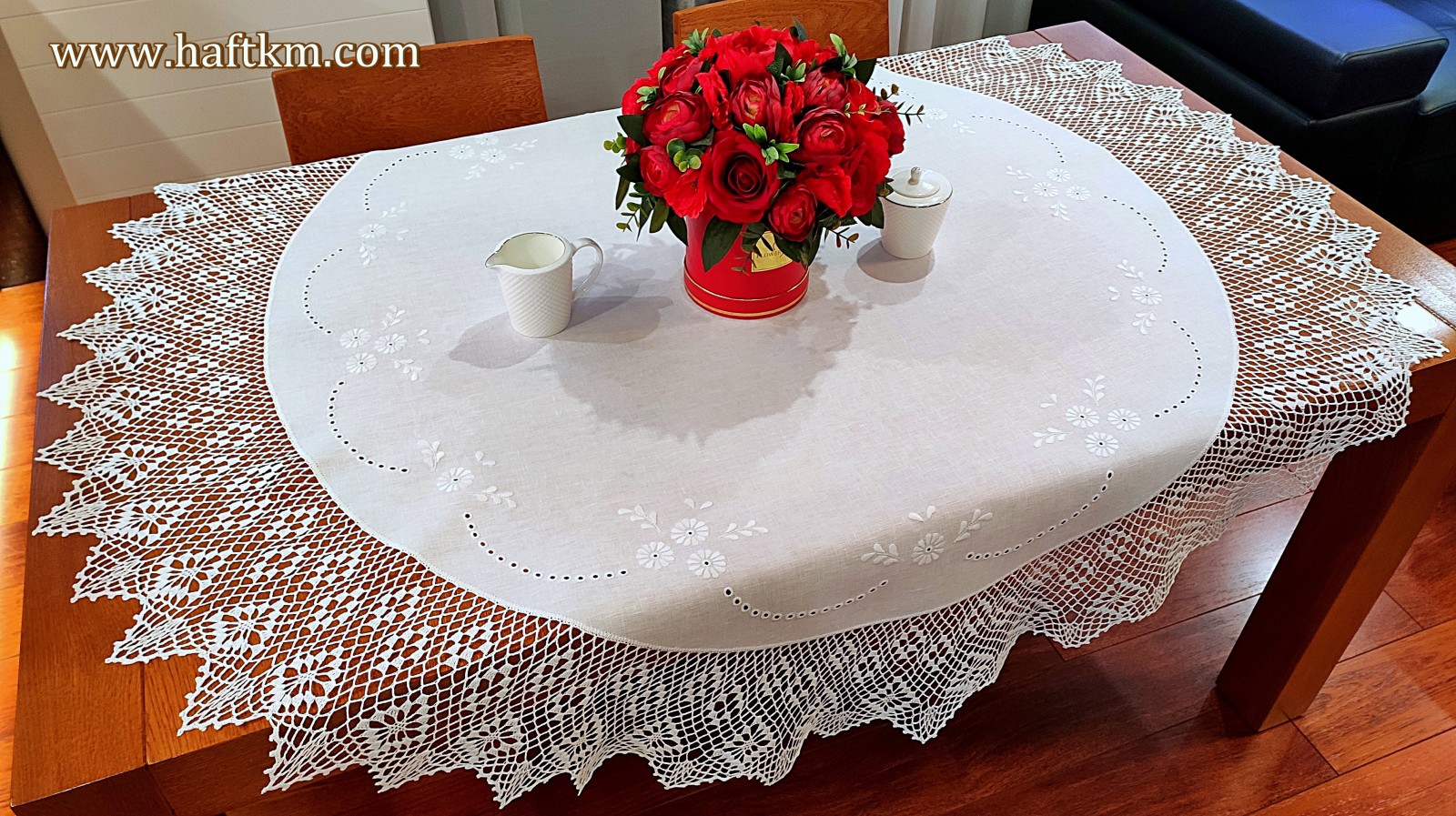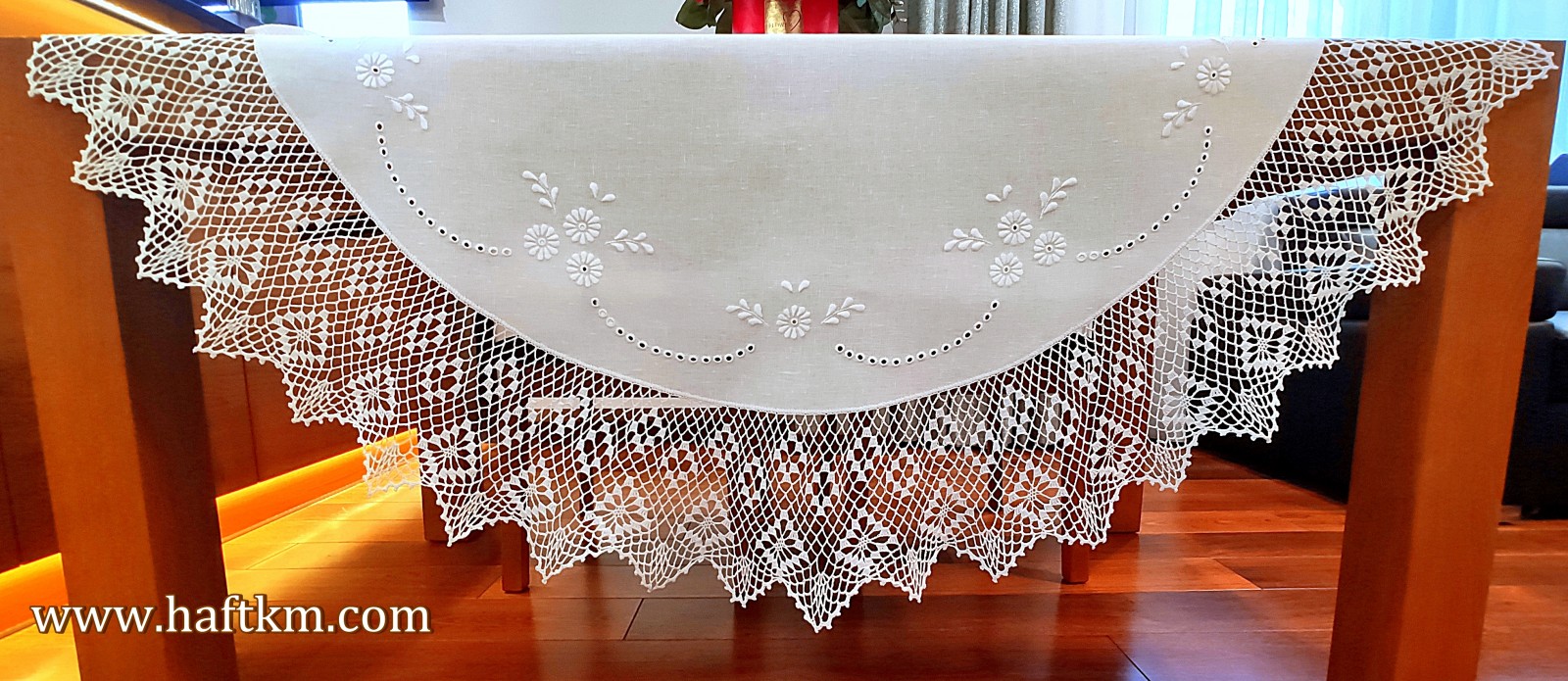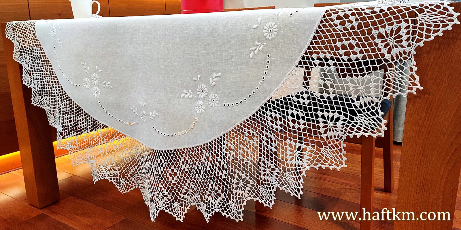 jak i nowoczesnych wnętrzach. Obrus wykonany bardzo pracochłonną i wymagającą ogromnej precyzji