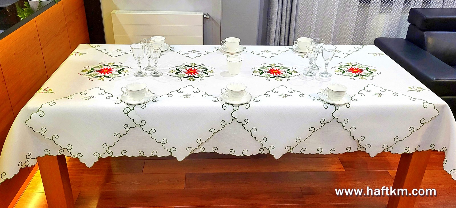 jak i nowoczesnych wnętrzach. Obrus wykonany bardzo pracochłonną i wymagającą ogromnej precyzji