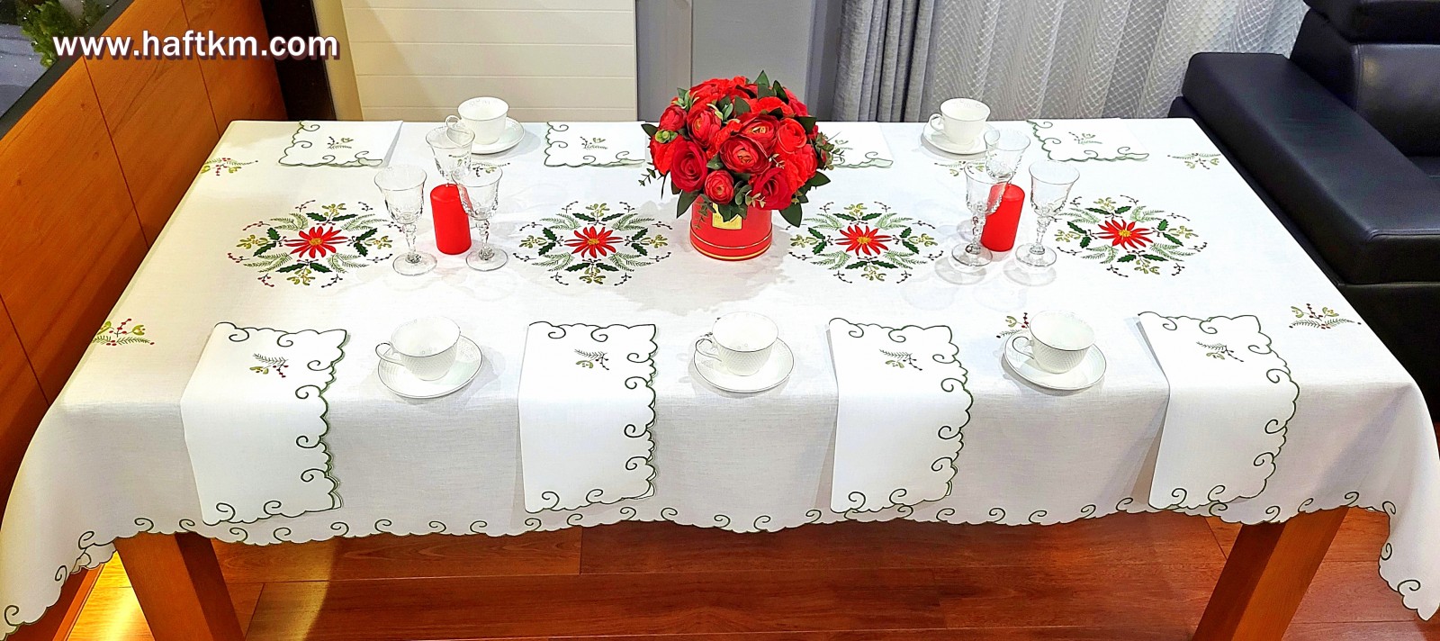Komplet składa sie z obrusa i ośmiu serwetek.