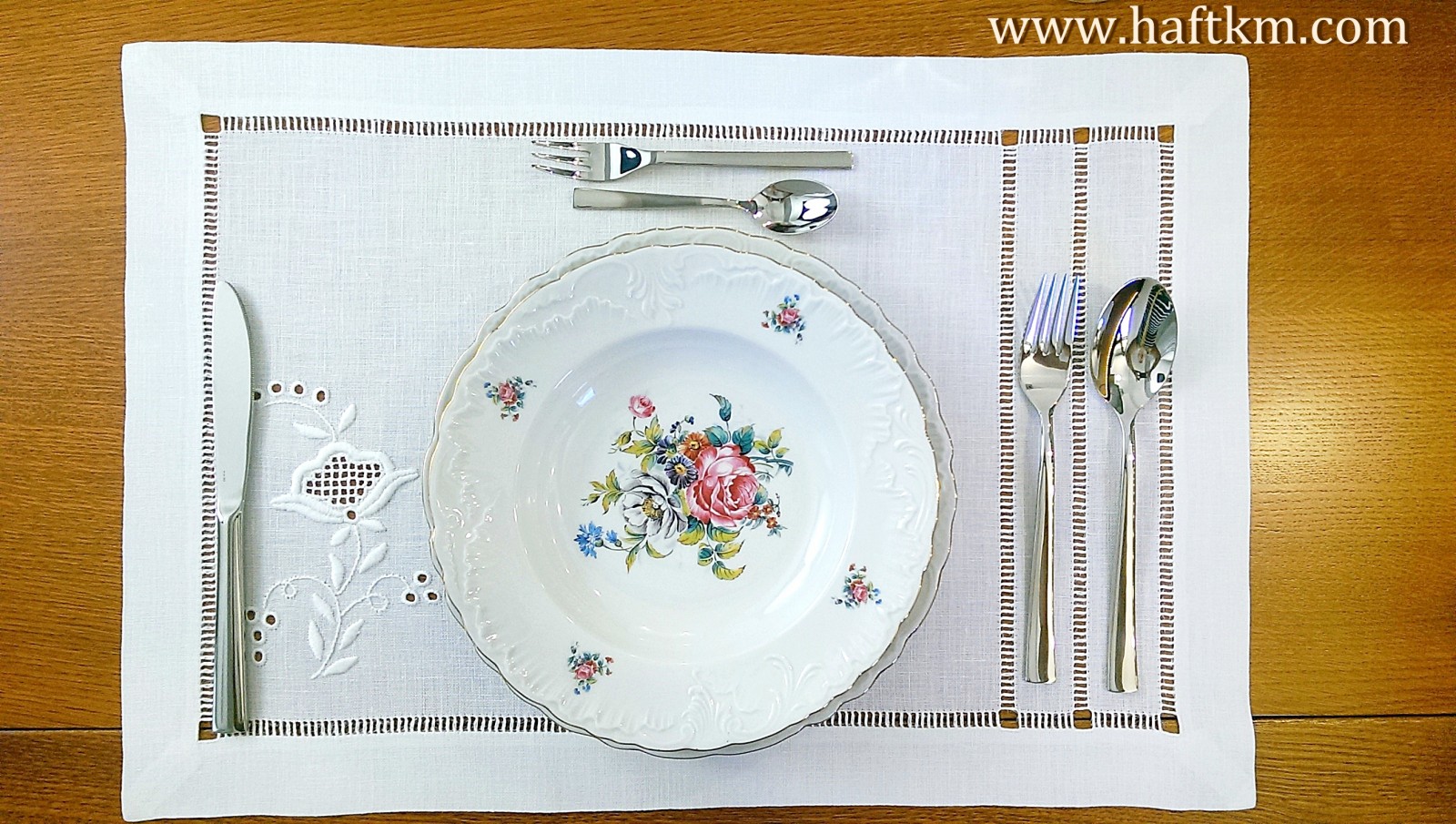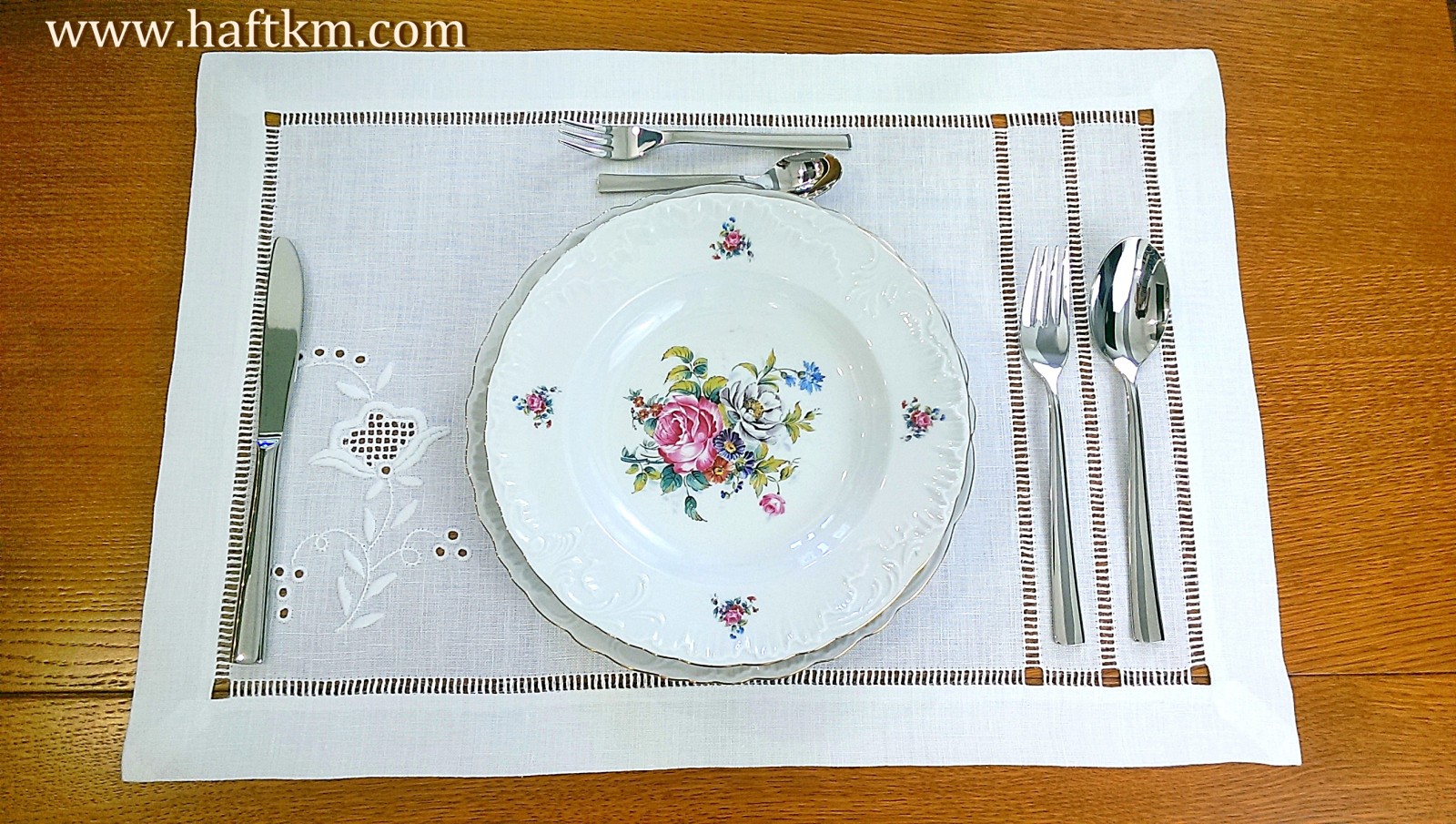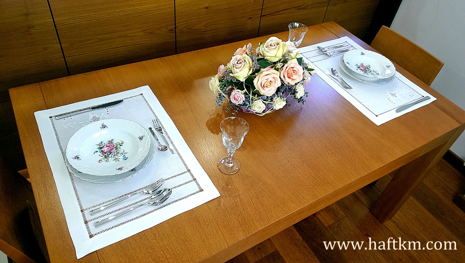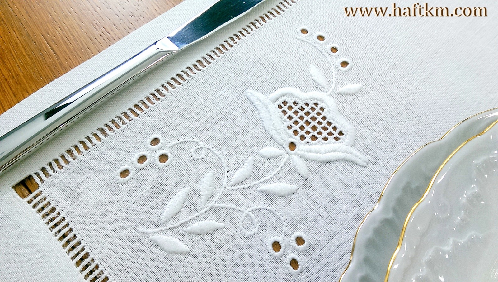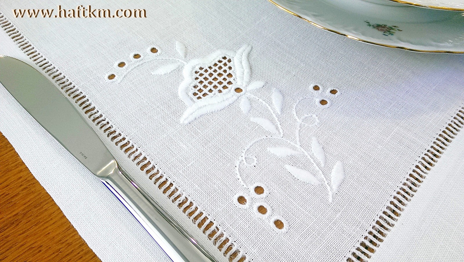 techniką hafciarską toledo i wypukły. Ponadto bieżnik został misternie ozdobiony elegancką i estetyczną mereżką.