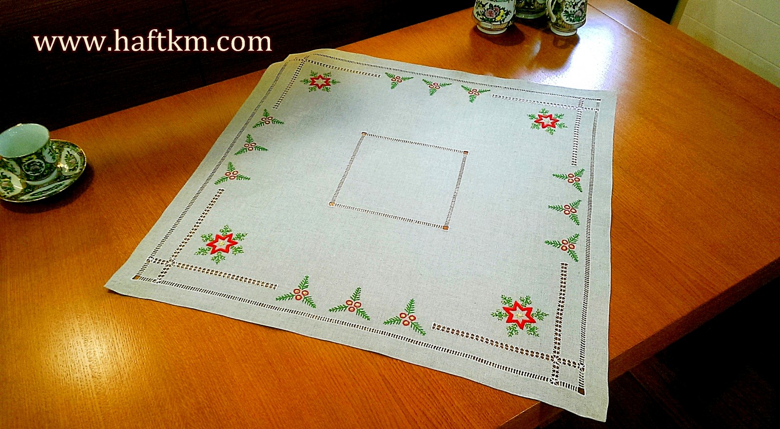 Materiał: naturalny len 100 %, nici bawełniane 100% mulina.