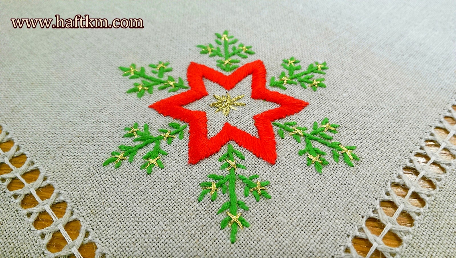 Technika wykonania: haft wypukły, mereżka wiązana, mereżka prosta.
