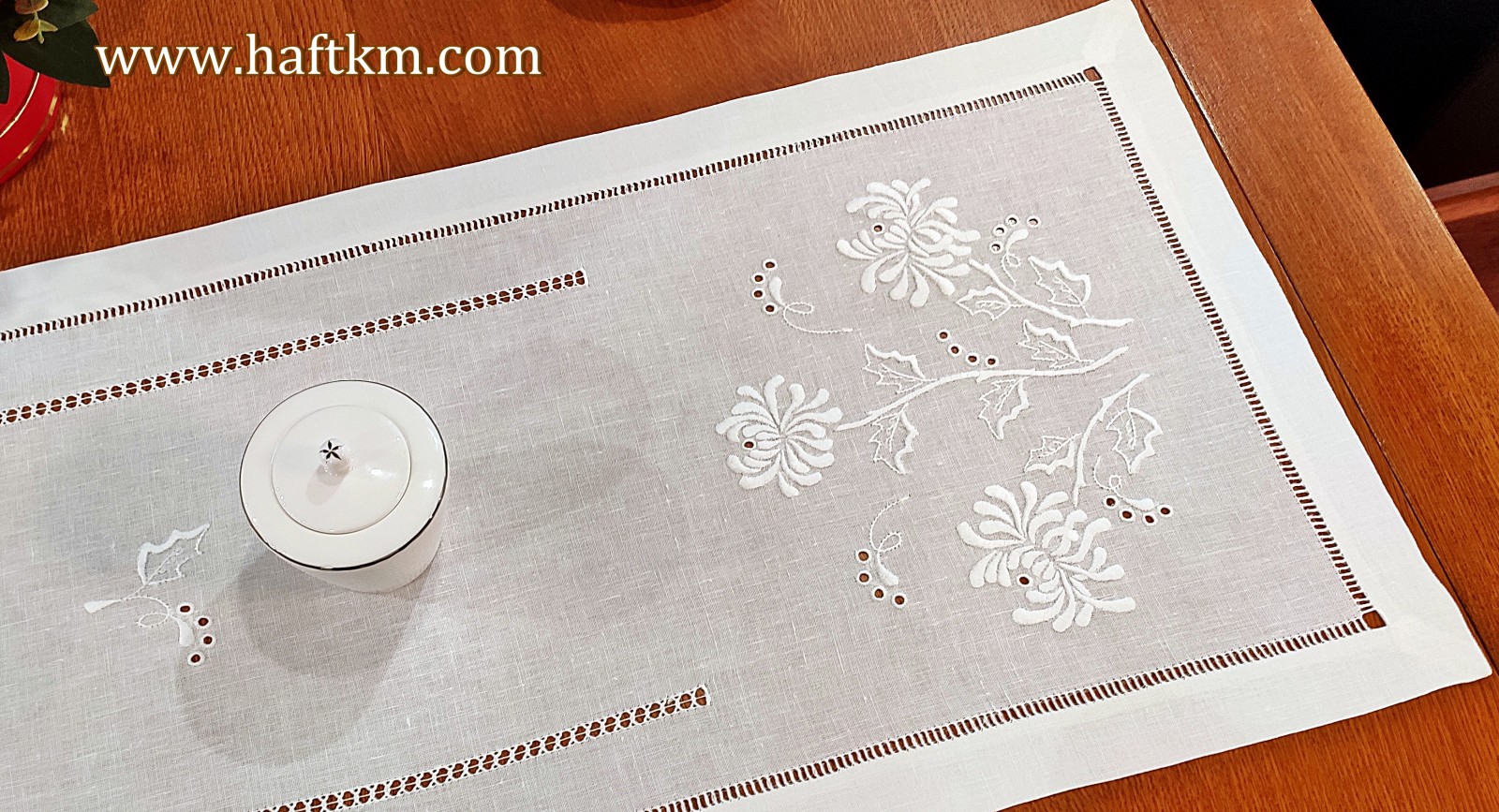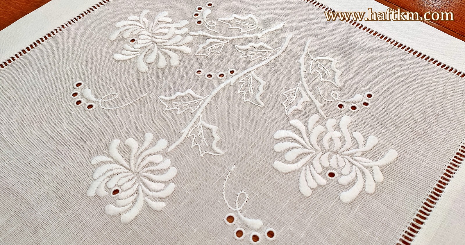 Piękny bieżnik lniany "Chryzantema"