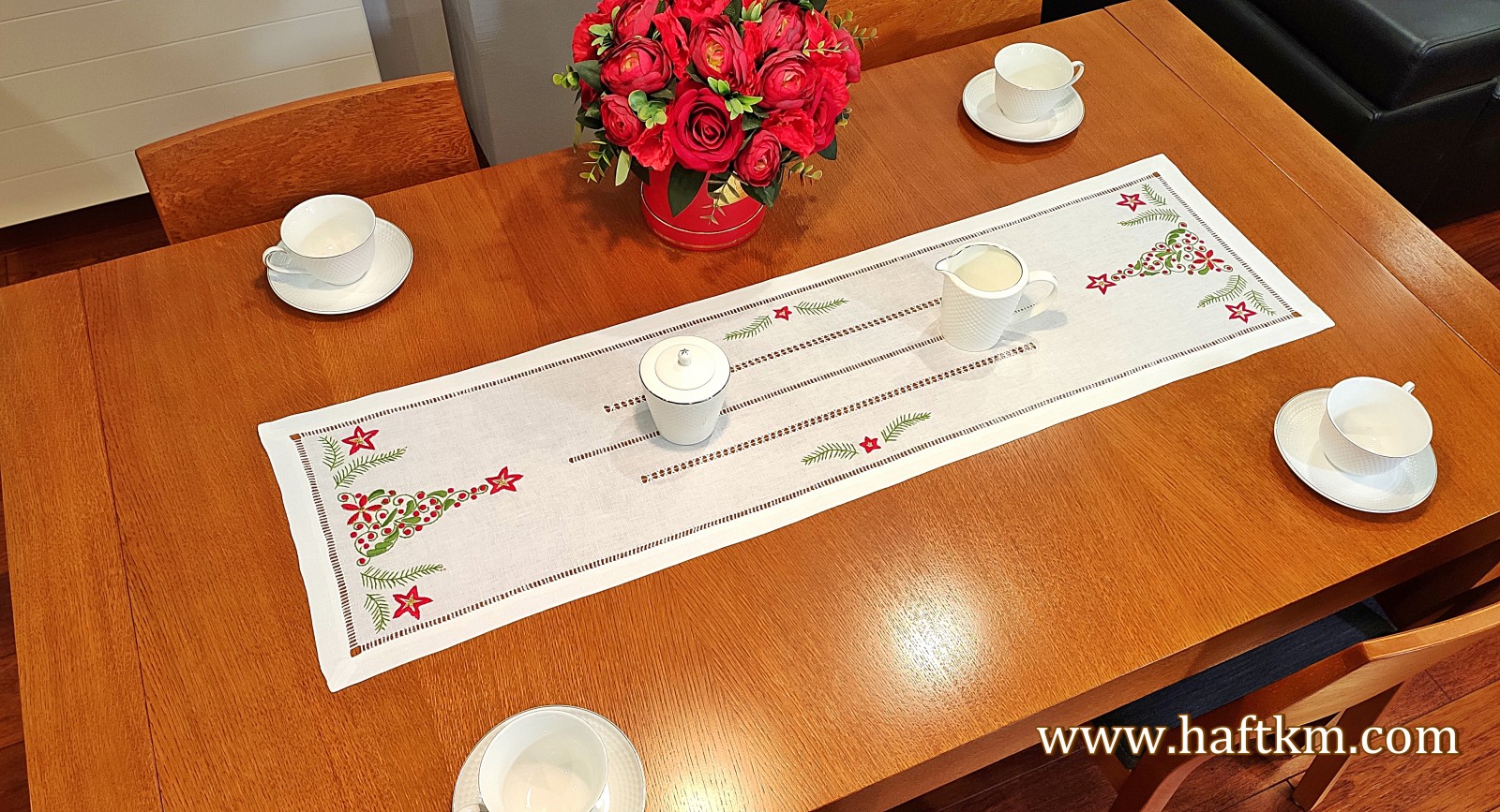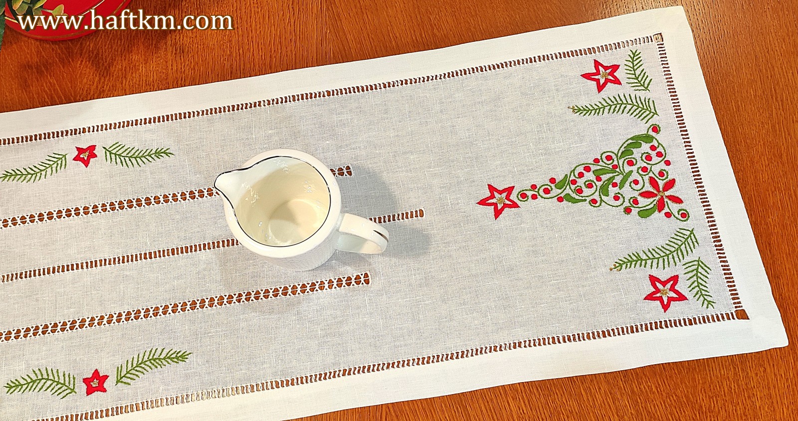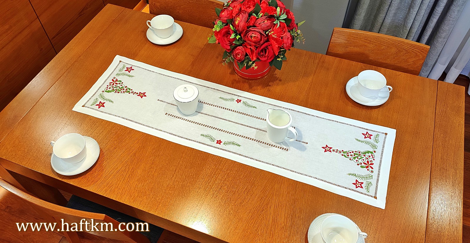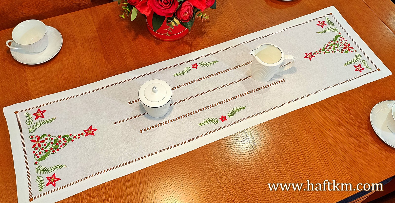 Ponadto bieżnik został misternie ozdobiony elegancką i estetyczną mereżką.