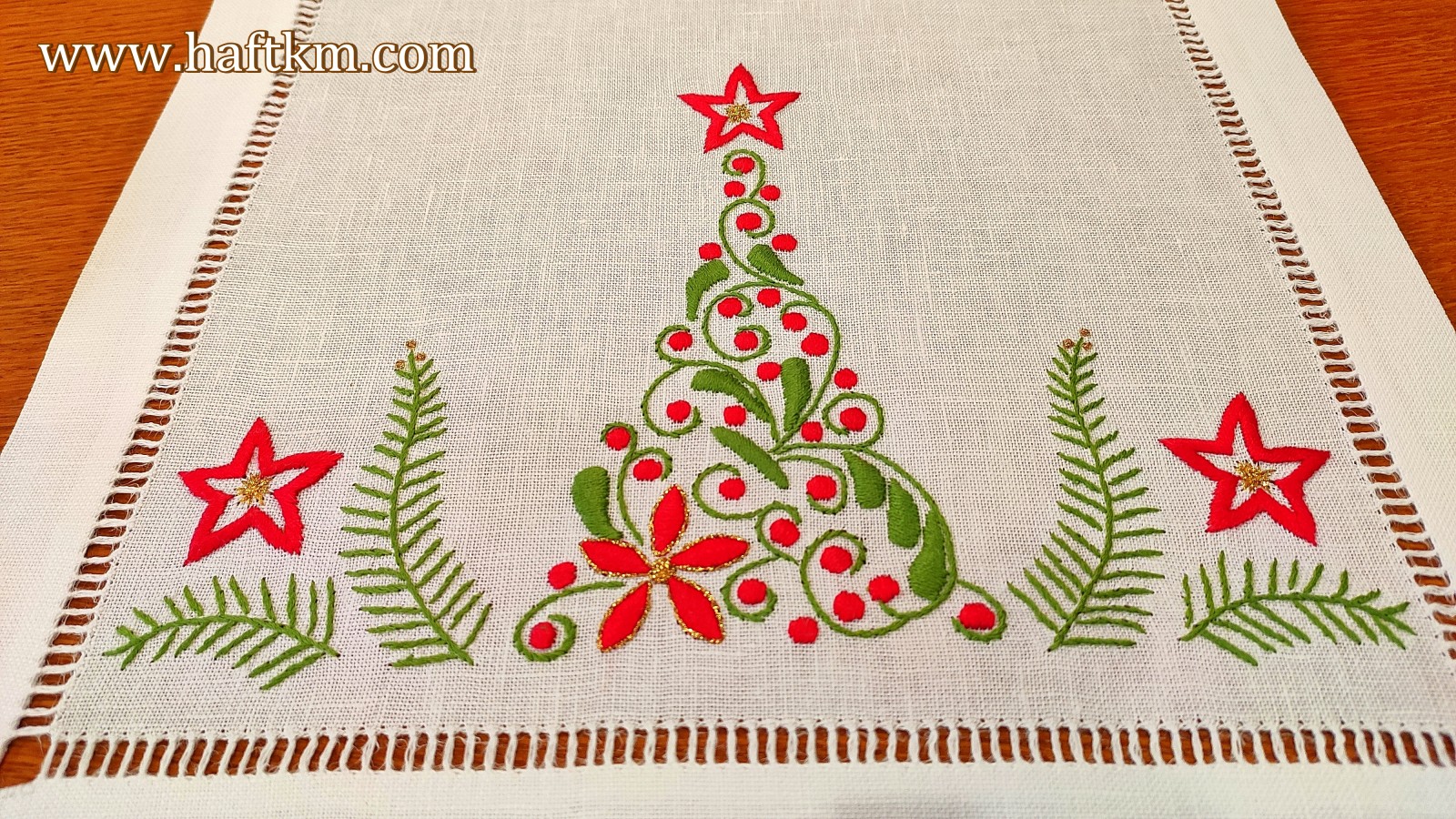 Materiał: naturalny len 100 %, nici bawełniane 100% mulina, nici metalizowane.