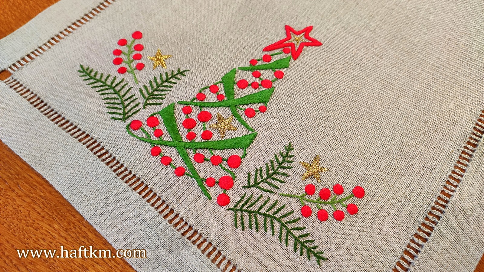 Materiał: naturalny len 100 %, nici bawełniane 100% mulina, nici metalizowane.