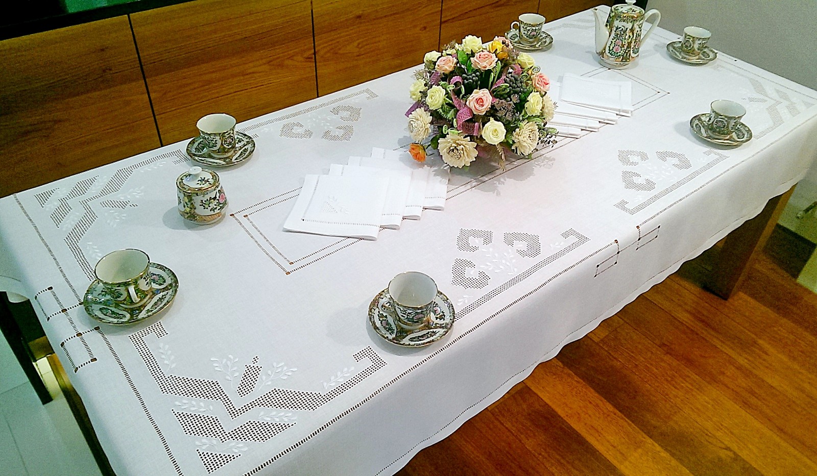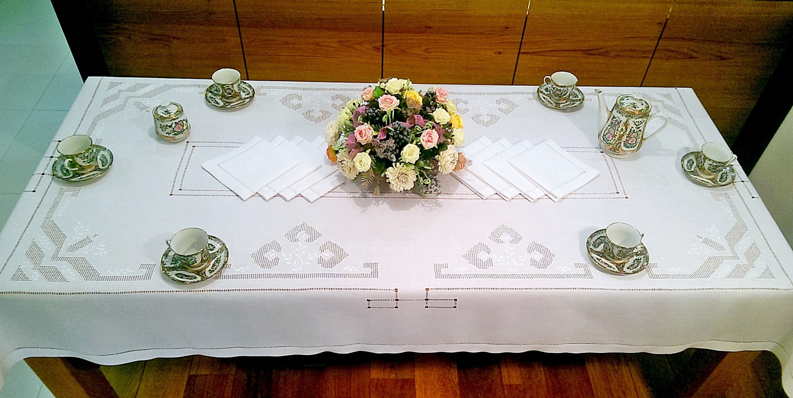 Komplet składa sie z obrusa i 8 serwetek.