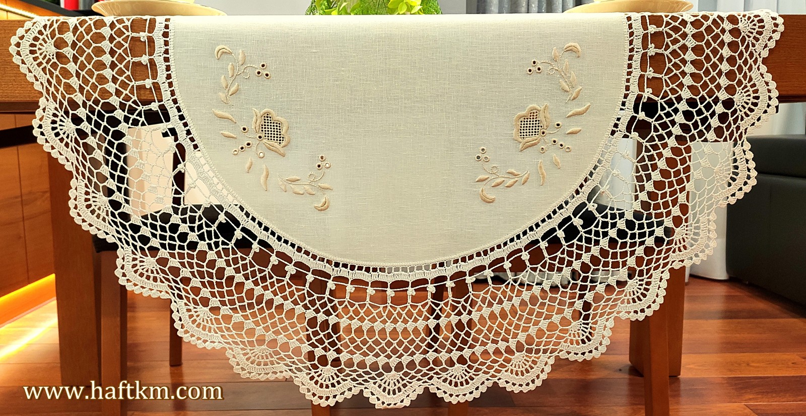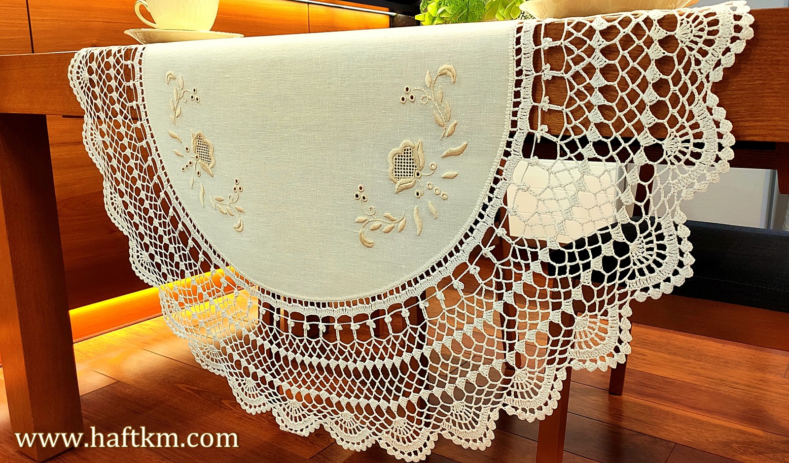 jak i nowoczesnych wnętrzach. Obrus wykonany bardzo pracochłonną i wymagającą ogromnej precyzji