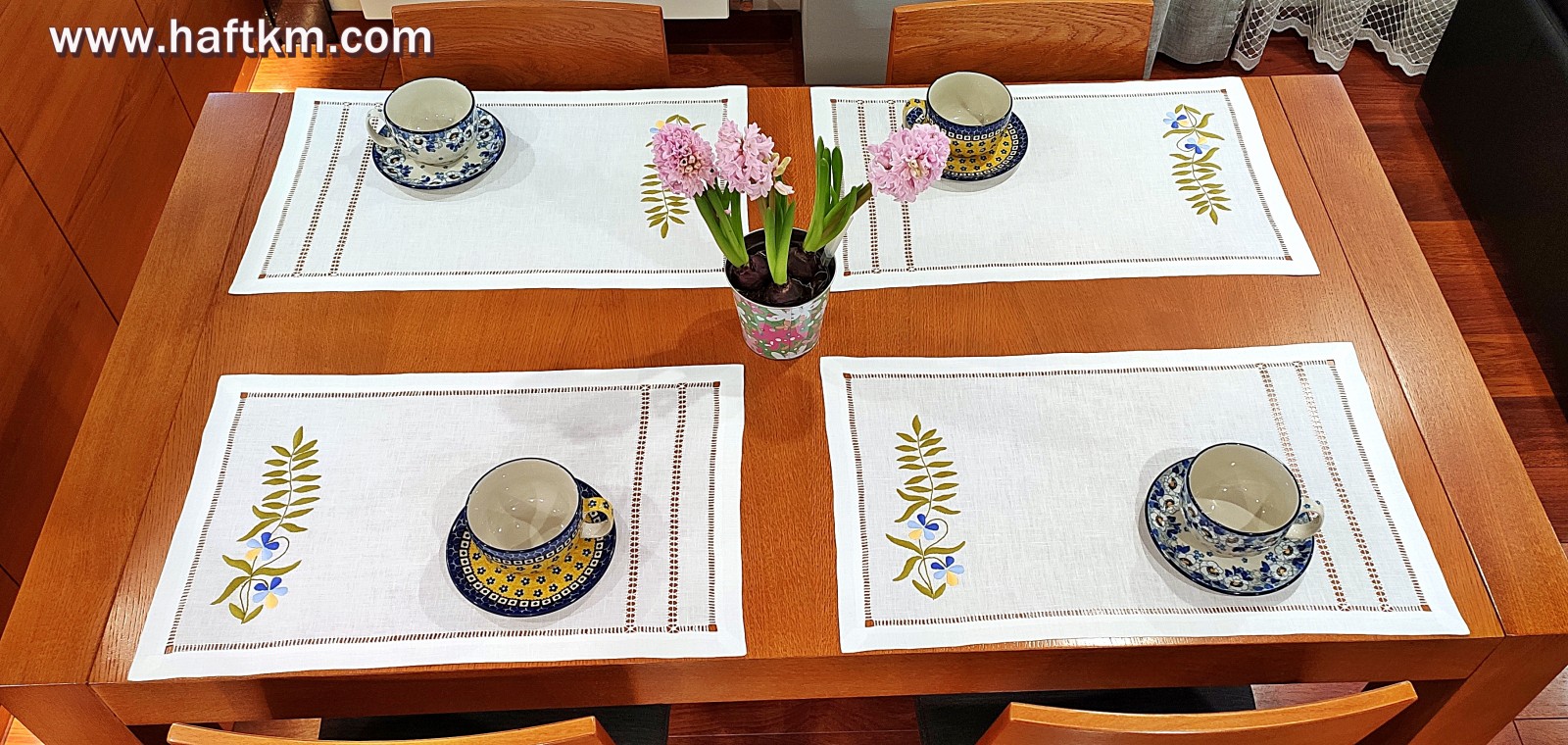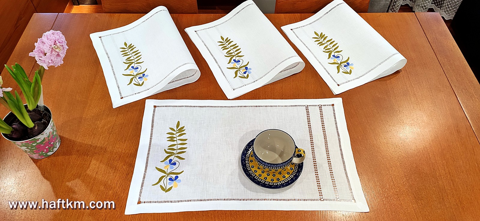 Materiał: naturalny len 100 %, nici bawełniane 100% mulina.