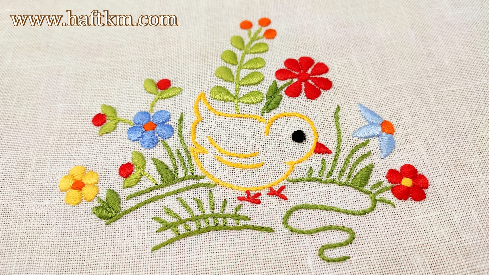 Ręcznie haftowana serweta " Kurczaczek wielkanocny "