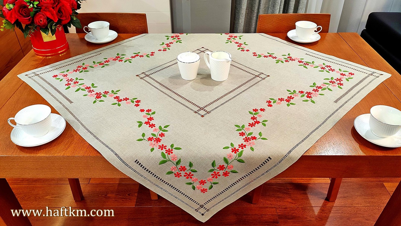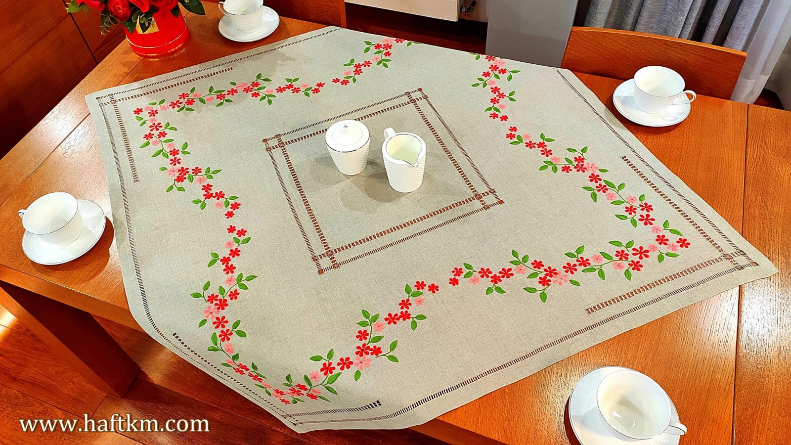 Ekskluzywna serweta, ręcznie haftowana.