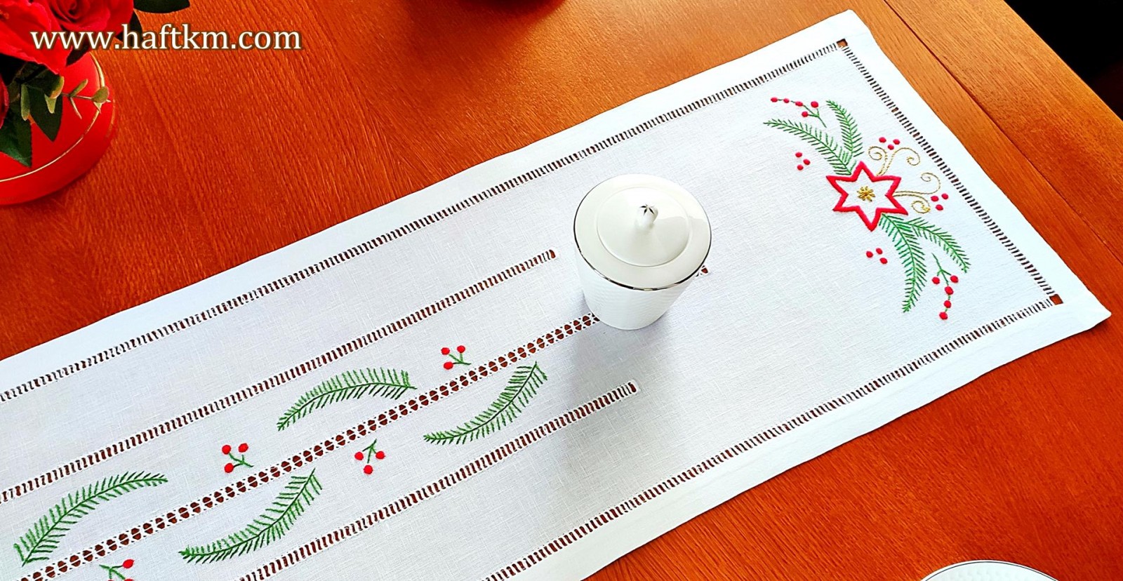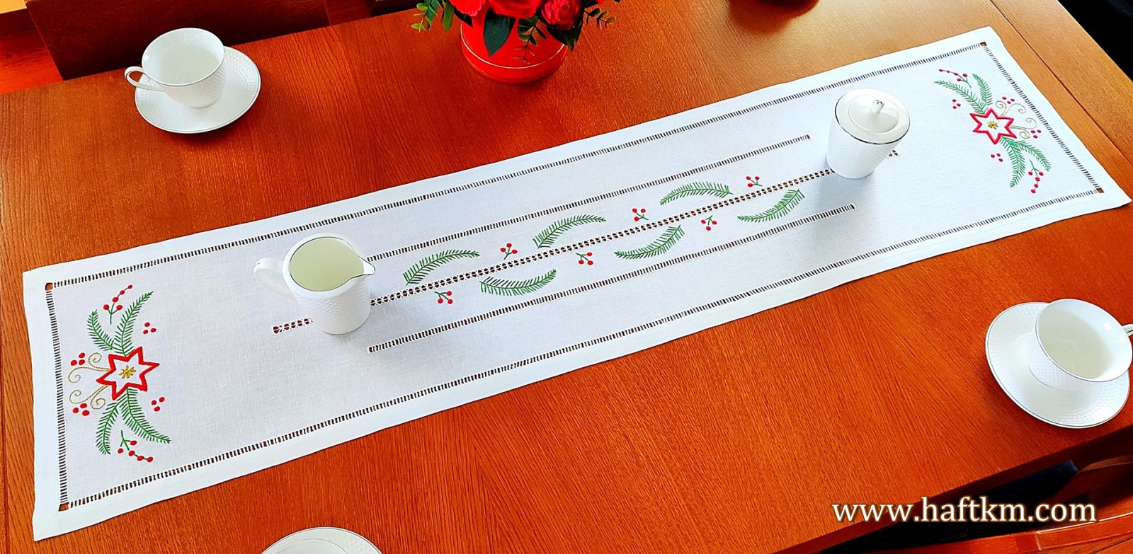 Ręcznie haftowany bieżnik bożonarodzeniowy " Gwiazdki "