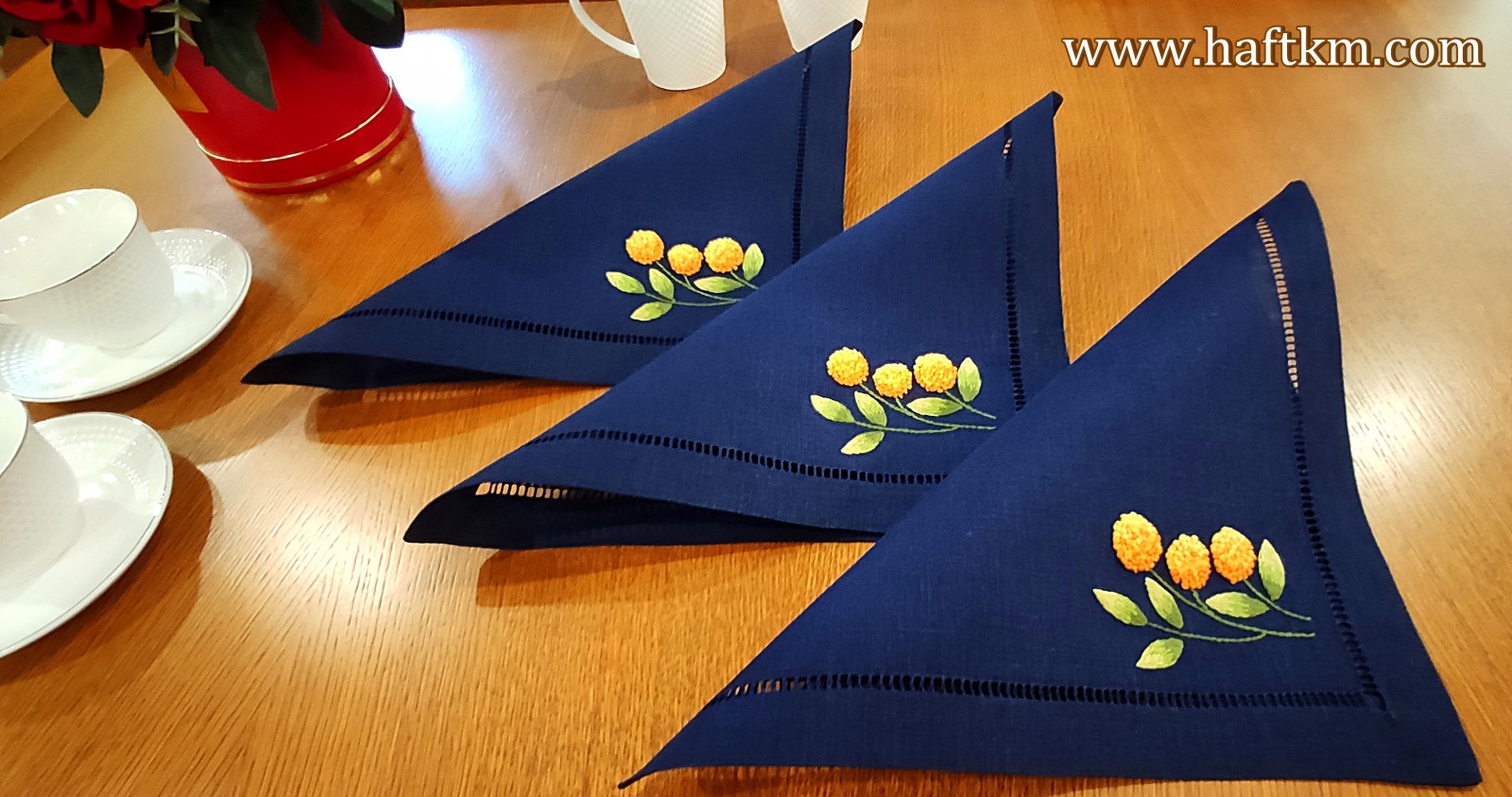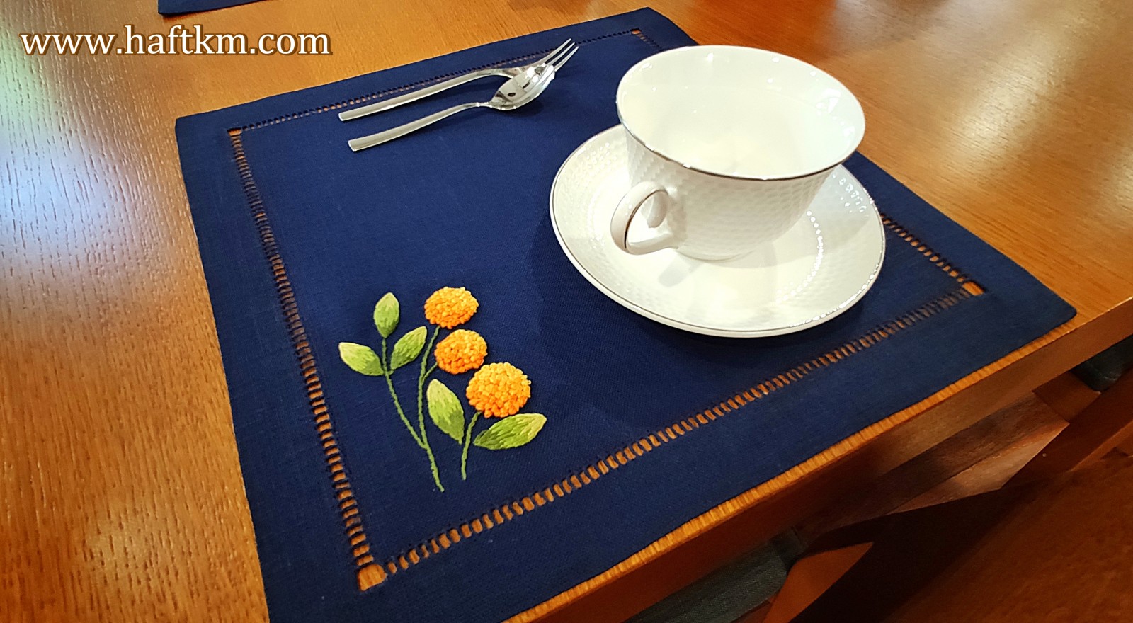 techniką haft cieniowany, haft brazylijski. Ponadto serweta została misternie ozdobiona elegancką i estetyczną mereżką.