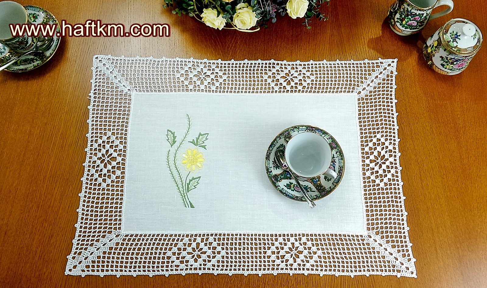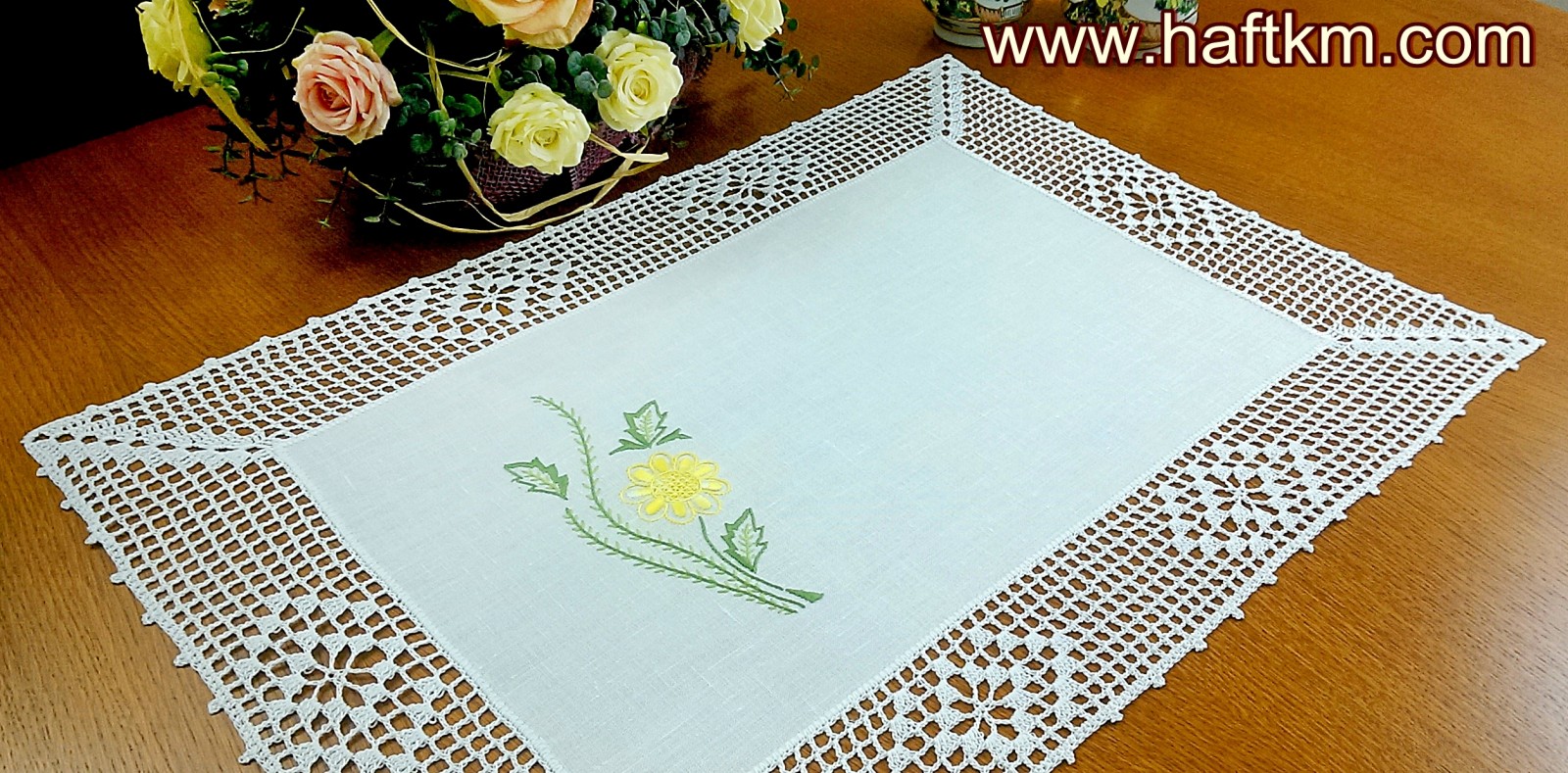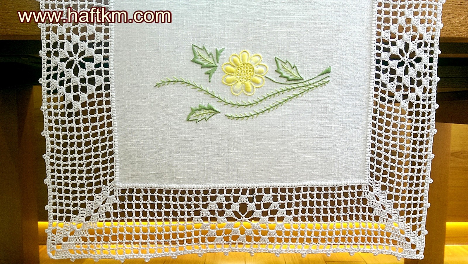 techniką hafciarską, haft wypukły i haft toledo . Ponadto serweta została misternie ozdobiona elegancką i misterną koronką szydełkową.