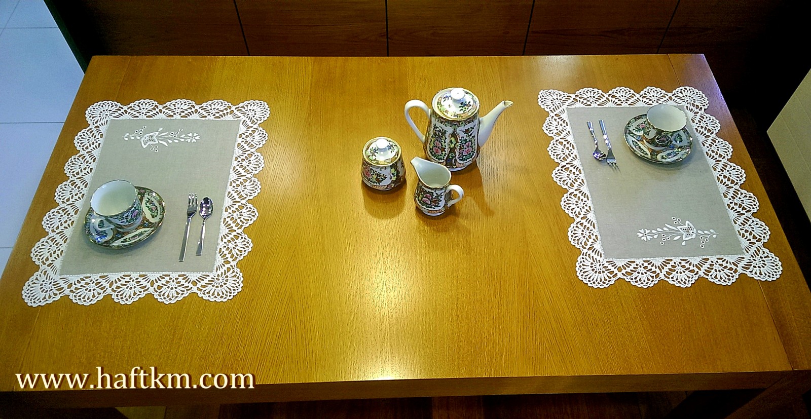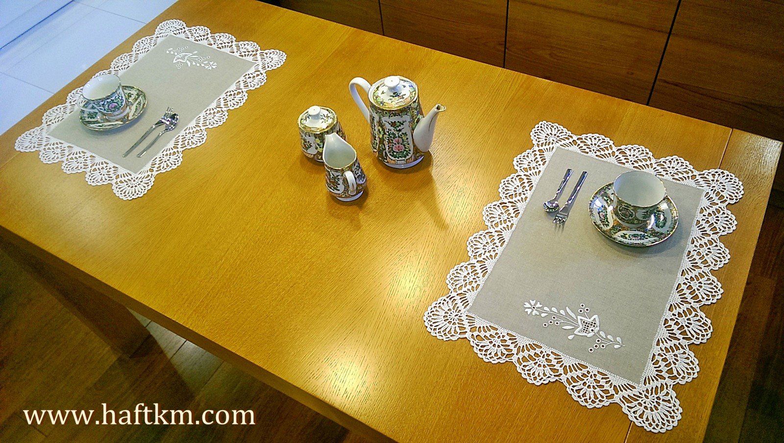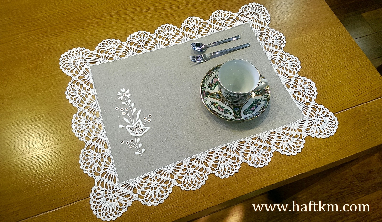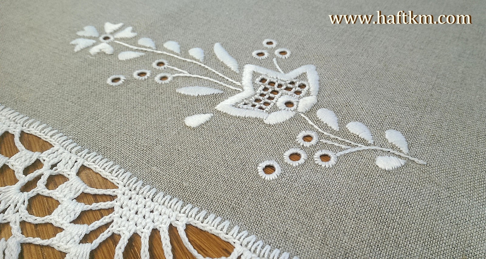 techniką hafciarską, haft wypukły i haft toledo . Ponadto serweta została misternie ozdobiona elegancką i misterną koronką szydełkową.